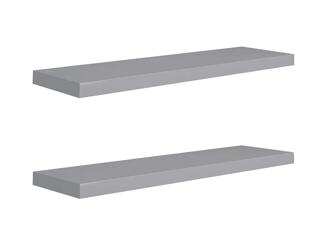 Mensola sospesa da parete 2 pezzi Grigio lucido 90x23,5x3,8 cm MDF