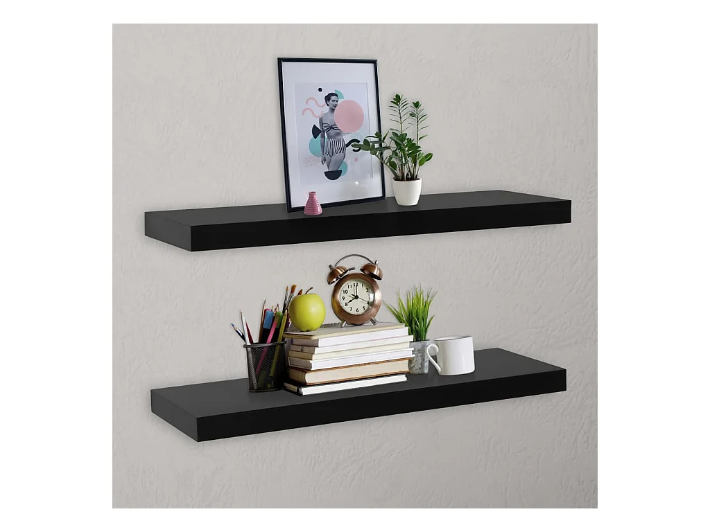 Mensole da parete sospese 2 pezzi Nero 100x20x3,8 cm