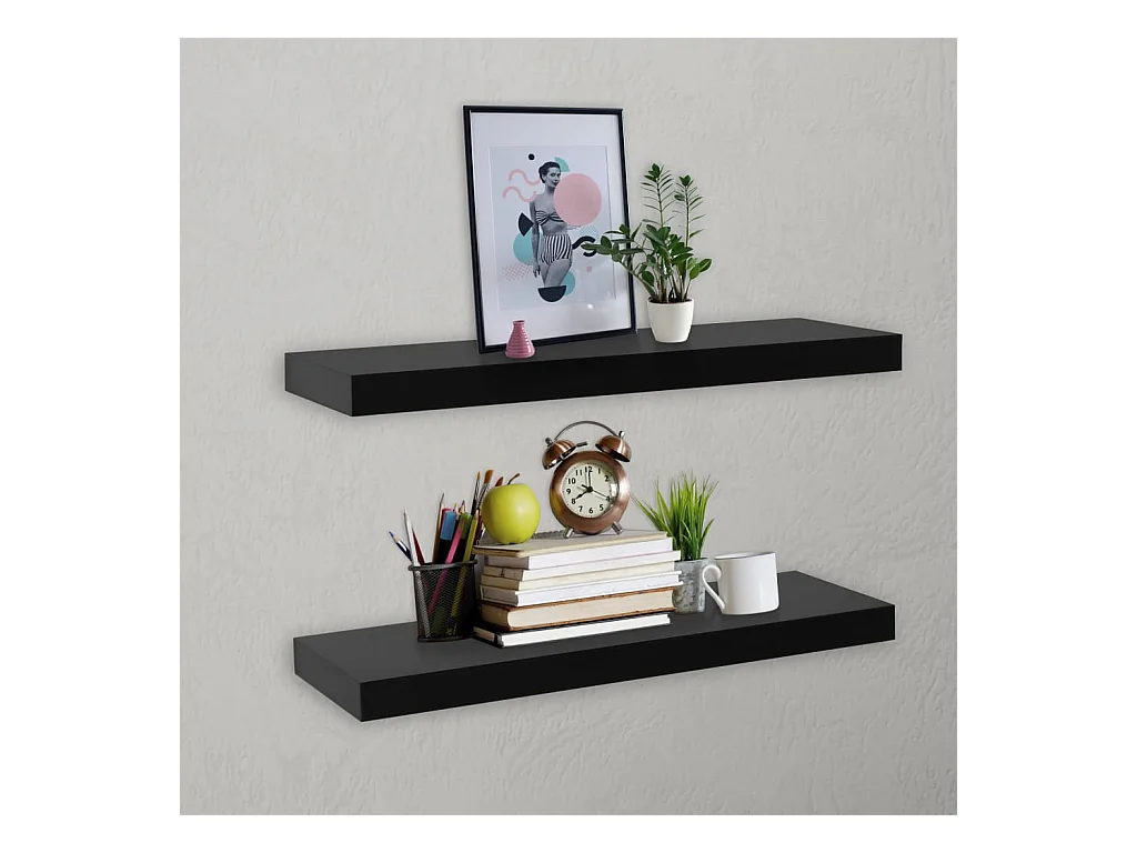 Mensole da parete sospese 2 pezzi Nero 60x20x3,8 cm
