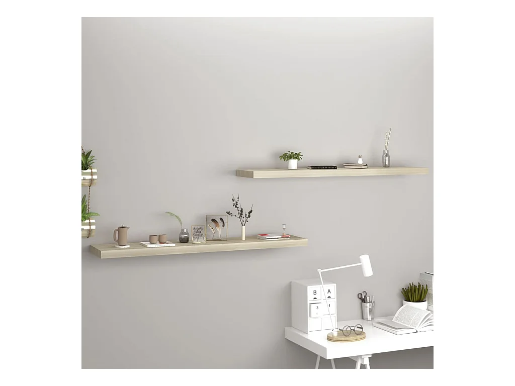 Mensole da parete sospese 2 pezzi Rovere 120x23,5x3,8 cm MDF