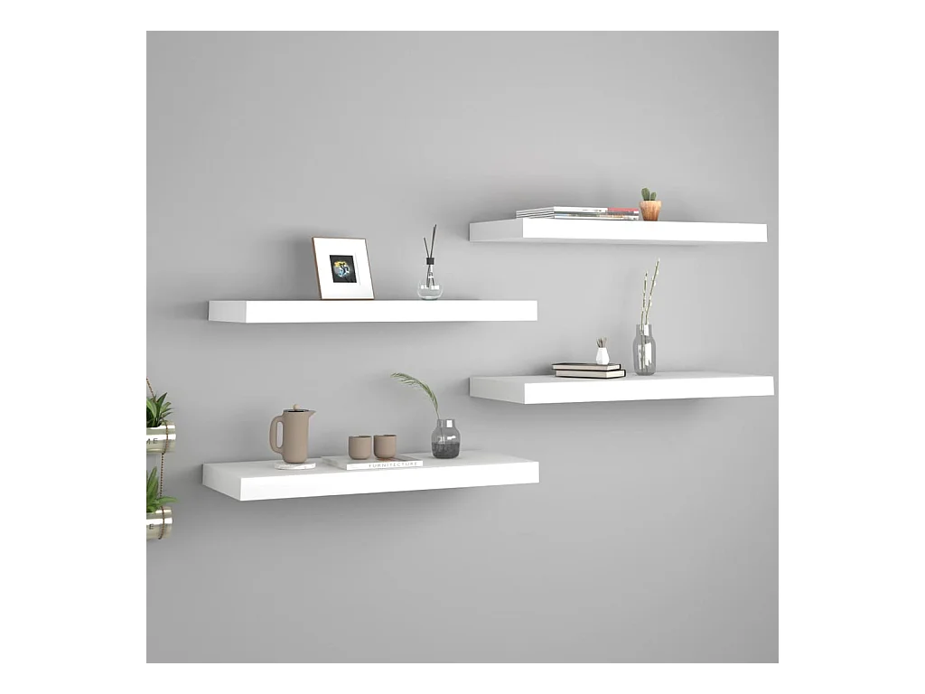 Mensole da parete sospese 4 pezzi bianche 60x23,5x3,8 cm MDF