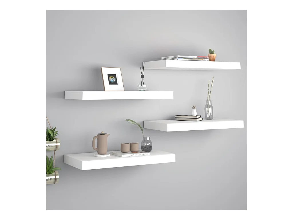 Mensole da parete sospese 4 pezzi Bianco 50x23x3,8 cm MDF