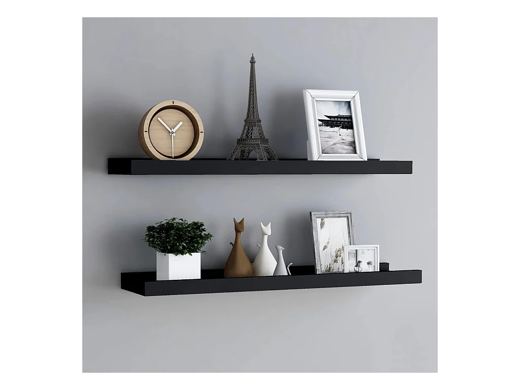 Mensole Loggia per Foto 2 pz Nere 80x9x3 cm in MDF