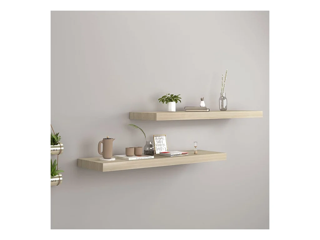 Mensole sospese a parete 2 pz Rovere 80x23,5x3,8 cm MDF
