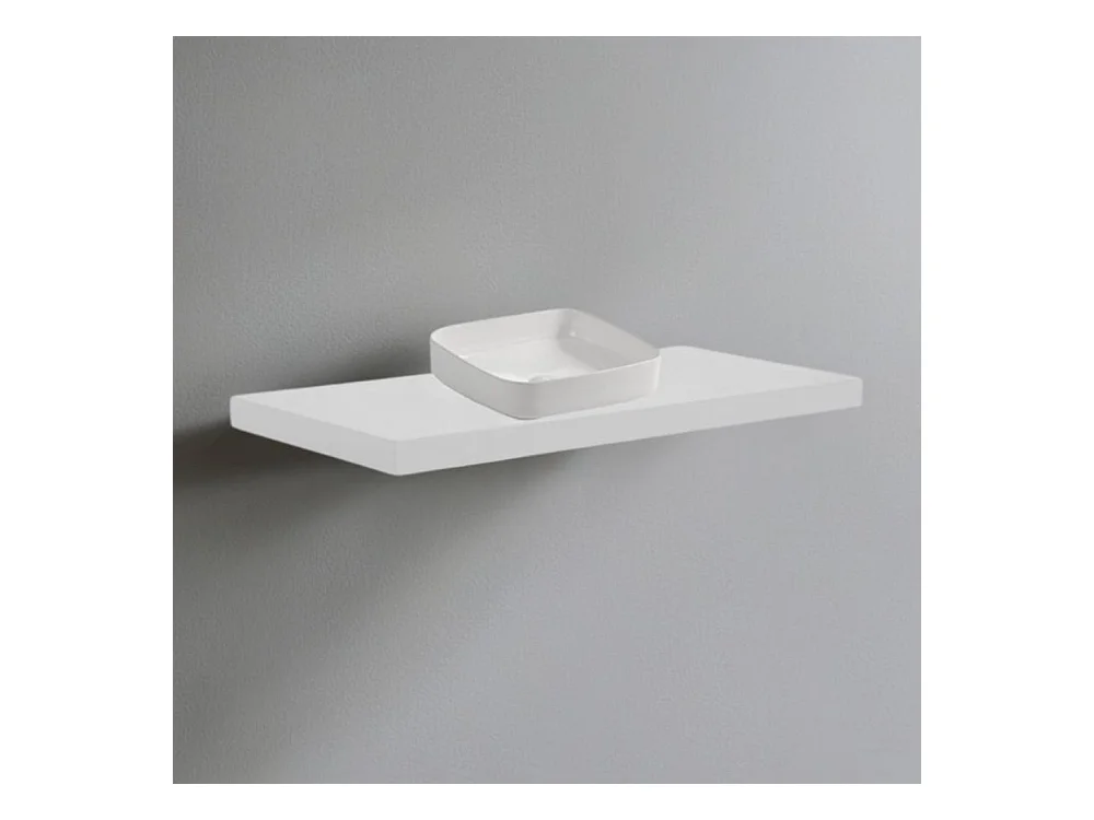 Mensolone da bagno bianco 80x48 con lavabo da appoggio bianco: minimalismo e funzionalità per un bagno moderno