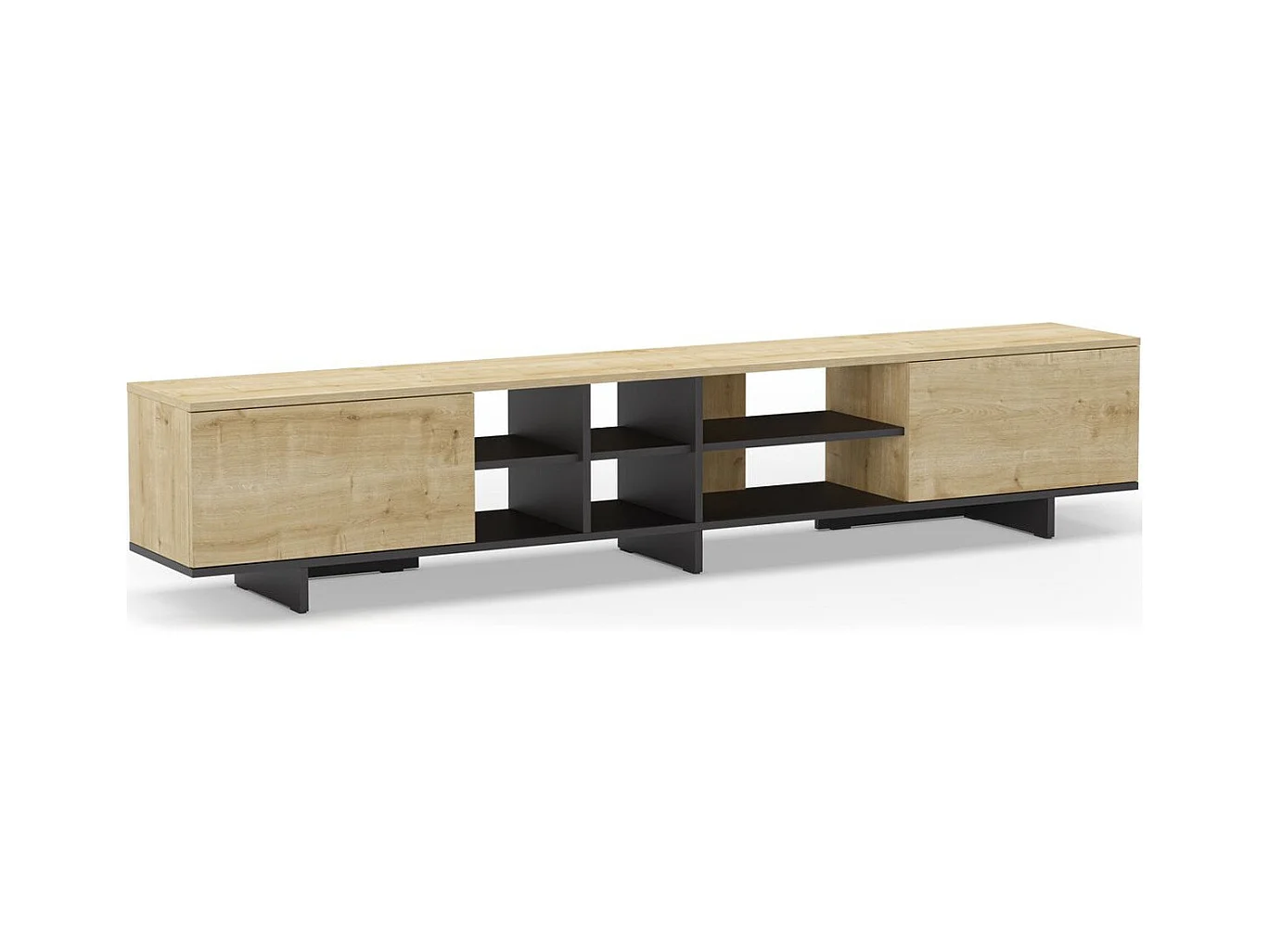 Meuble TV 2 portes décor chêne et noir 230 cm - Alicia