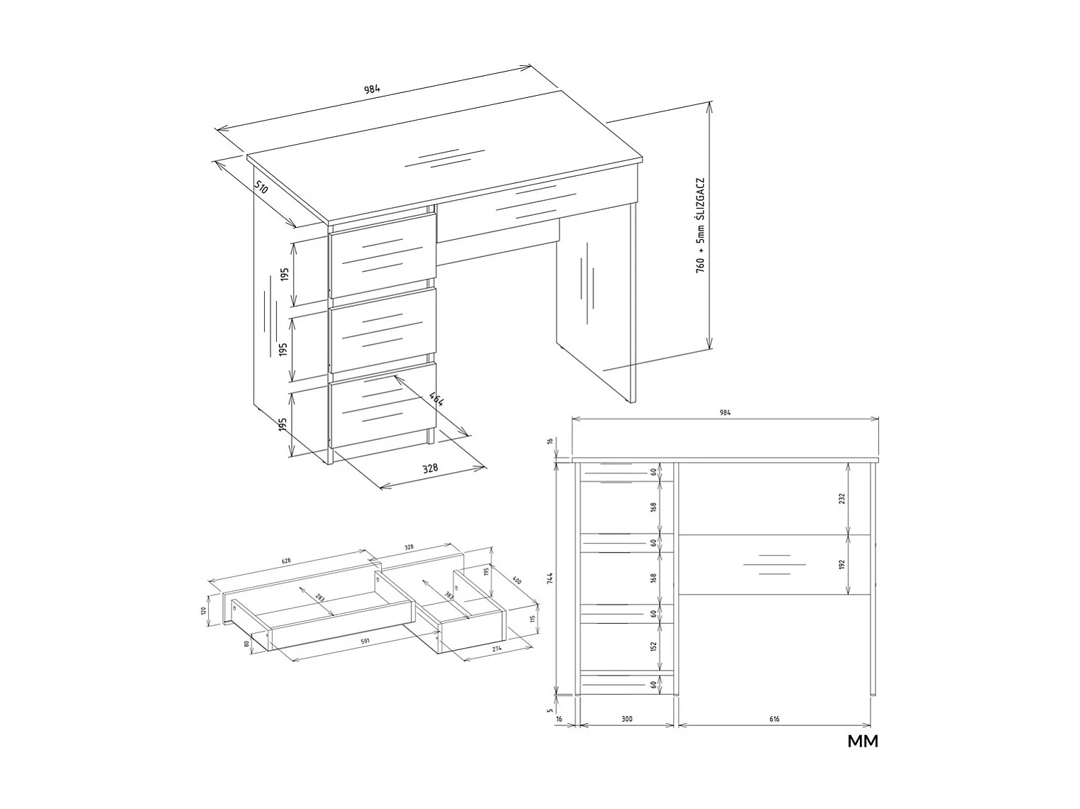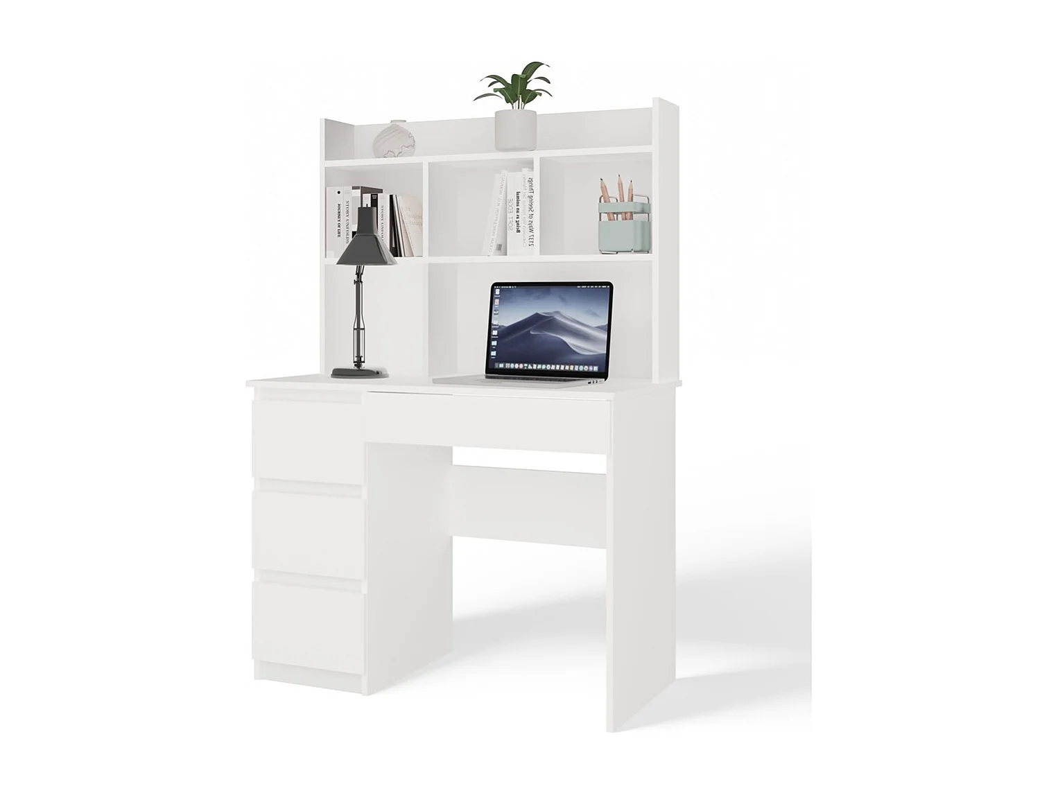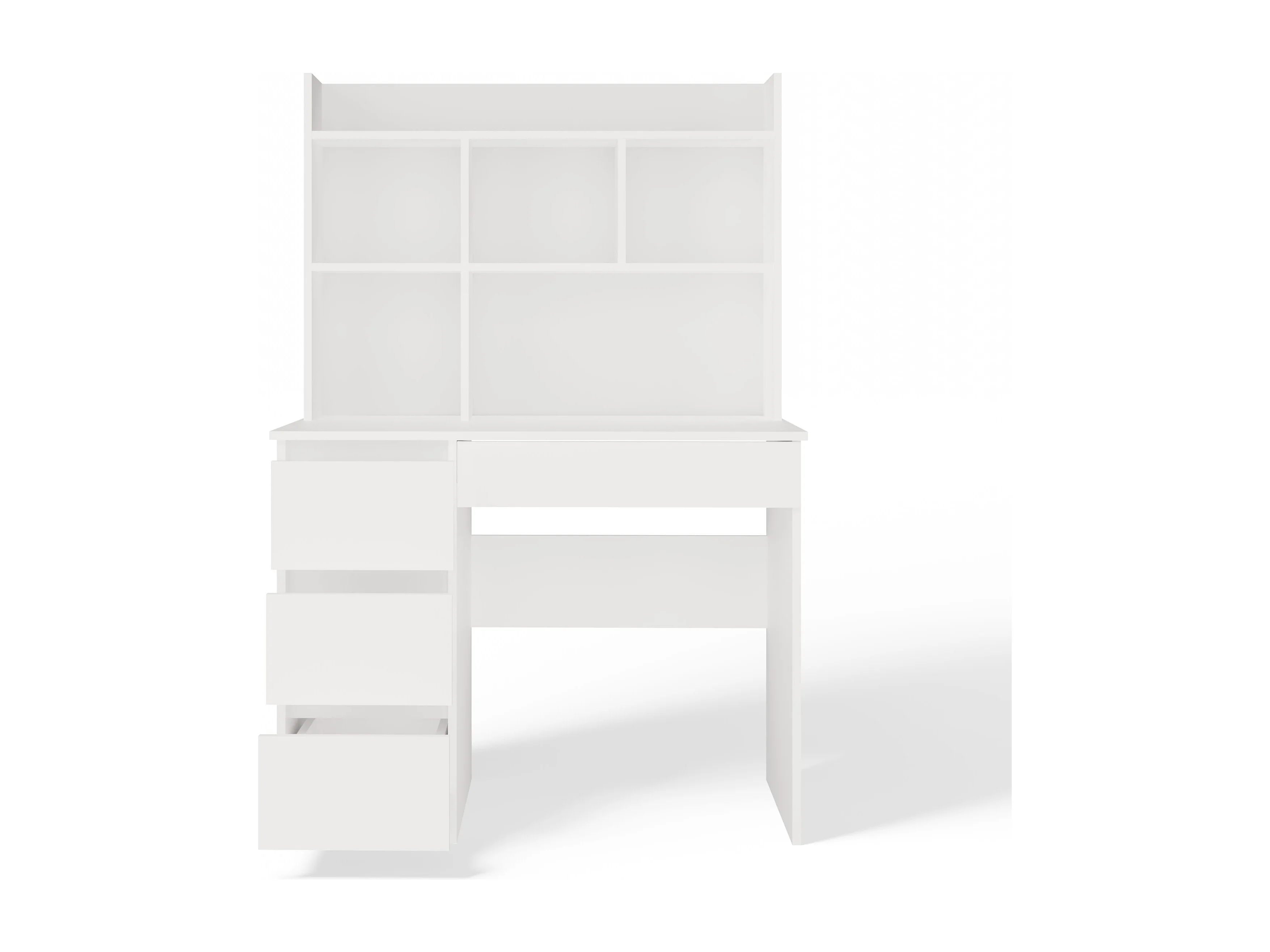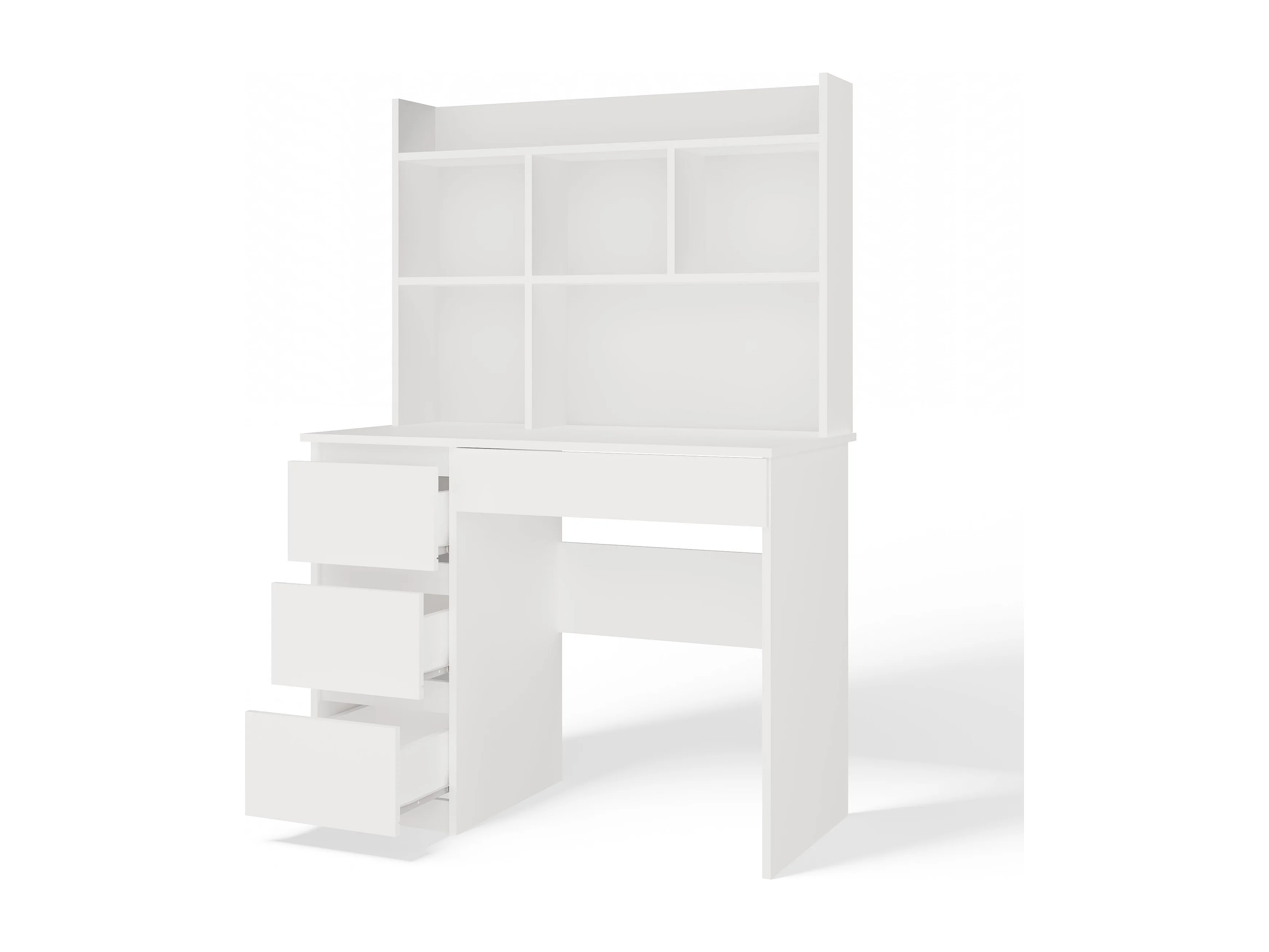 MIJAS SINISTRA - Scrivania 98×51×146 cm con 4 cassetti e 4 ripiani, con mensola superiore per ufficio / camera da letto - Bianco