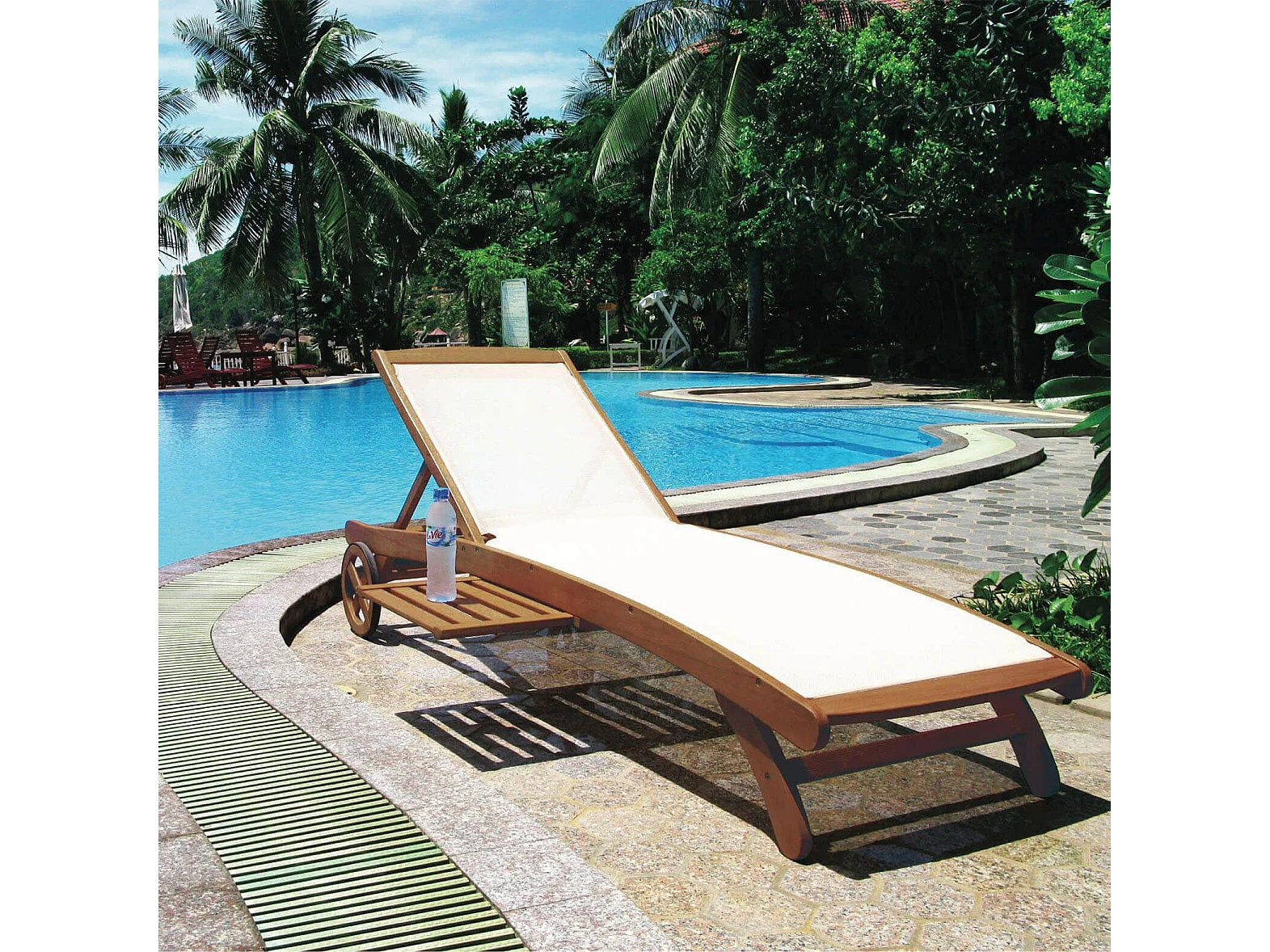 MilaniHome.it - Lettino Sdraio In Legno Di Acacia E Textilene Con Ruote Per Esterno Giardino Portico Ristorante Bar Hotel Albergo Agriturismodi coloreMarrone