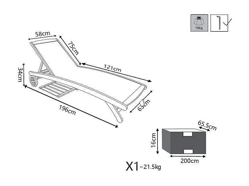 Lettino Prendisole 205x110x31,5 cm in Legno Massello di Pino