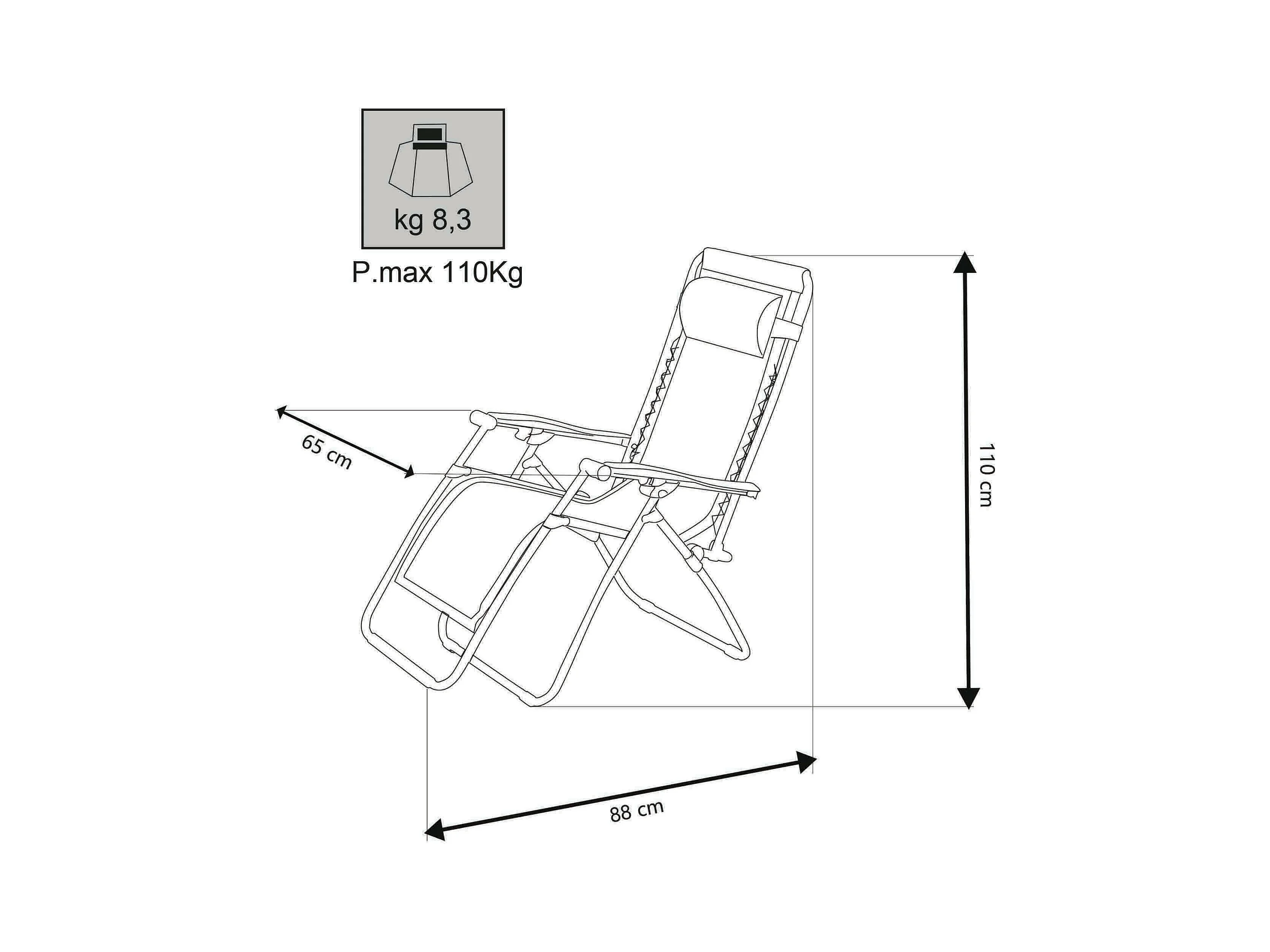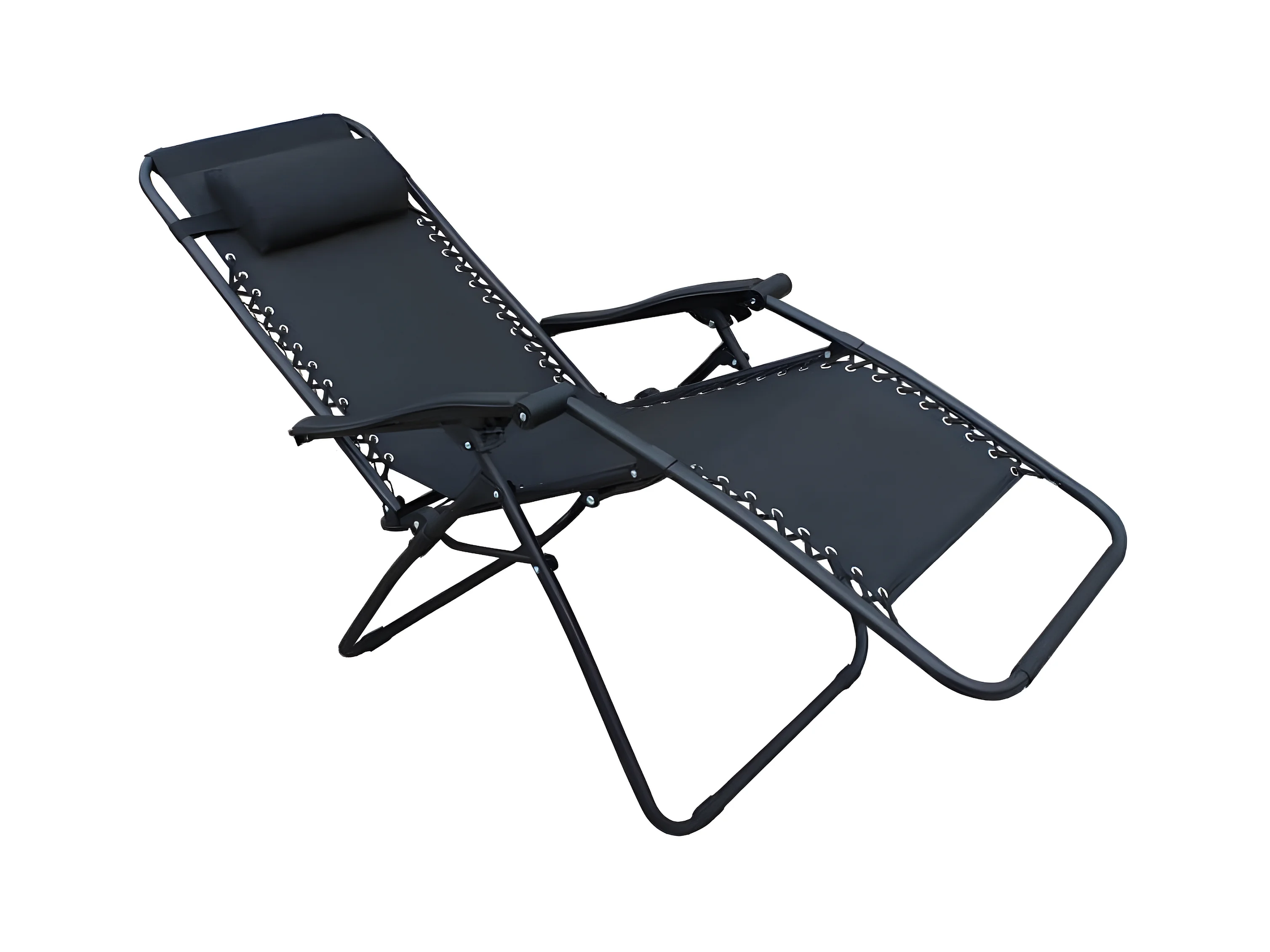 Poltrona pieghevole con cuscino, metallo e tessuto, nera (137x63,5x100,5 cm)