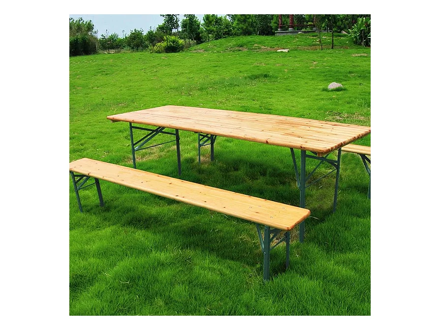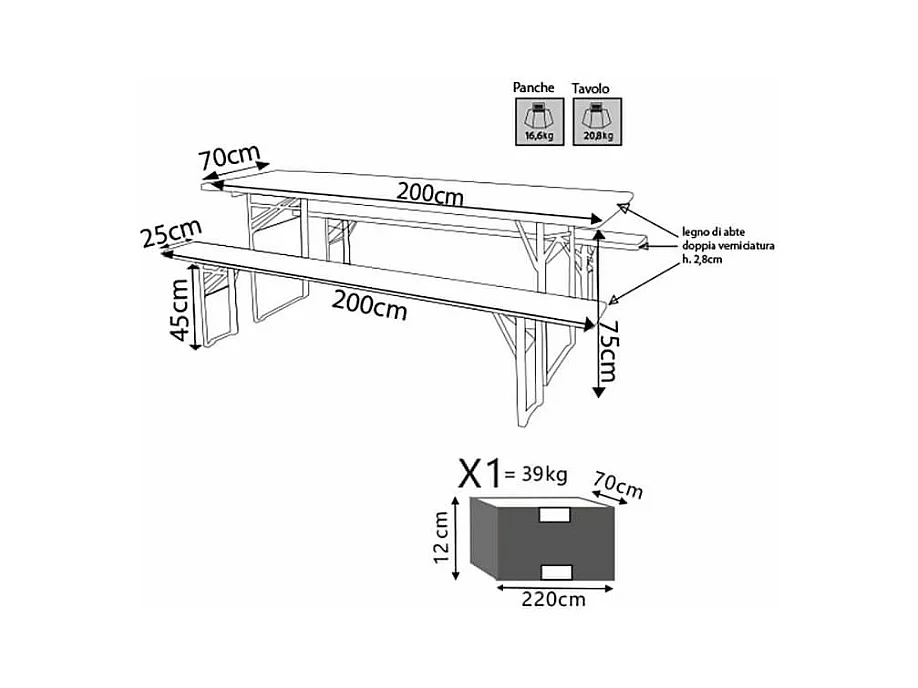 MilaniHome.it - Set Completo Tavolo Birreria 200x70 Con Panche Per Esterno Giardino, Portico, Terrazzo, Campeggio Matrimonio Sagradi coloreMarrone
