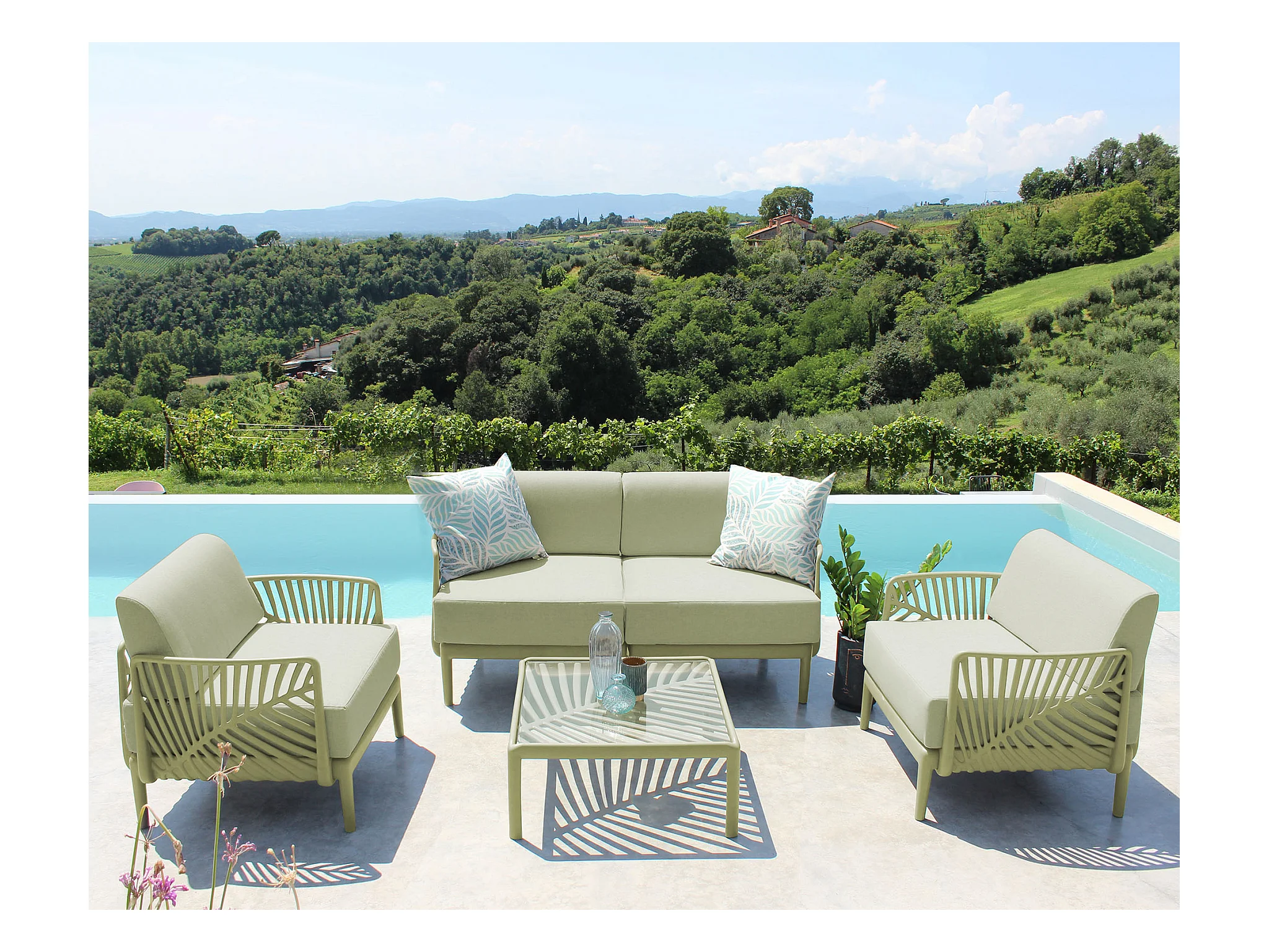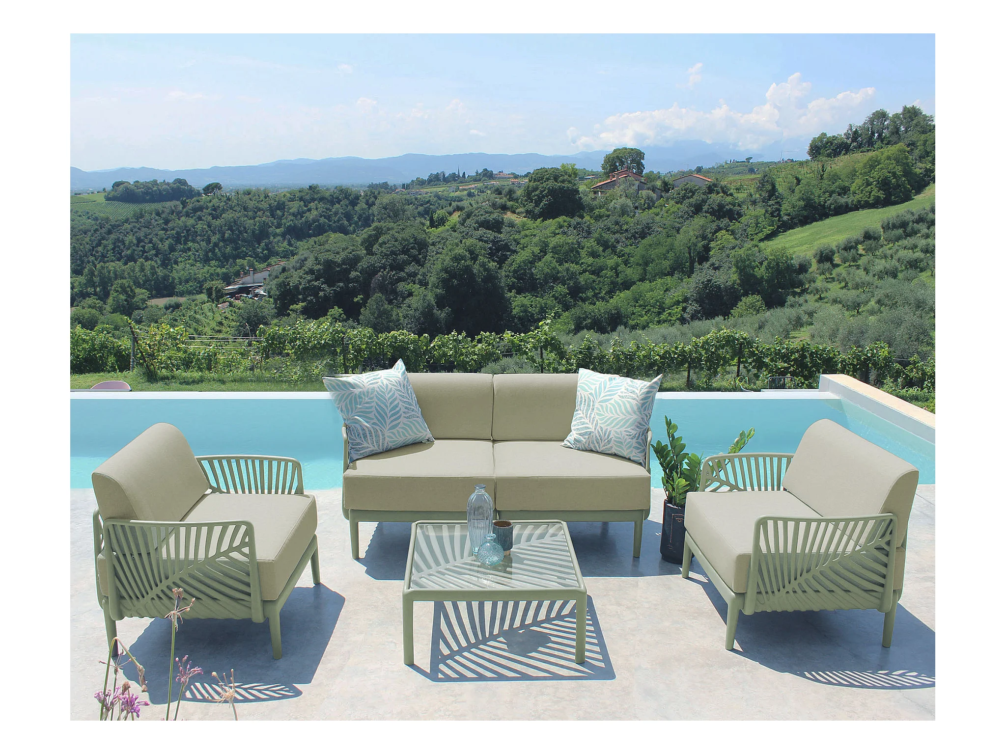 MilaniHome.it - Salotto con divano 2 posti da giardino in polipropilenedi coloreVerde Oliva