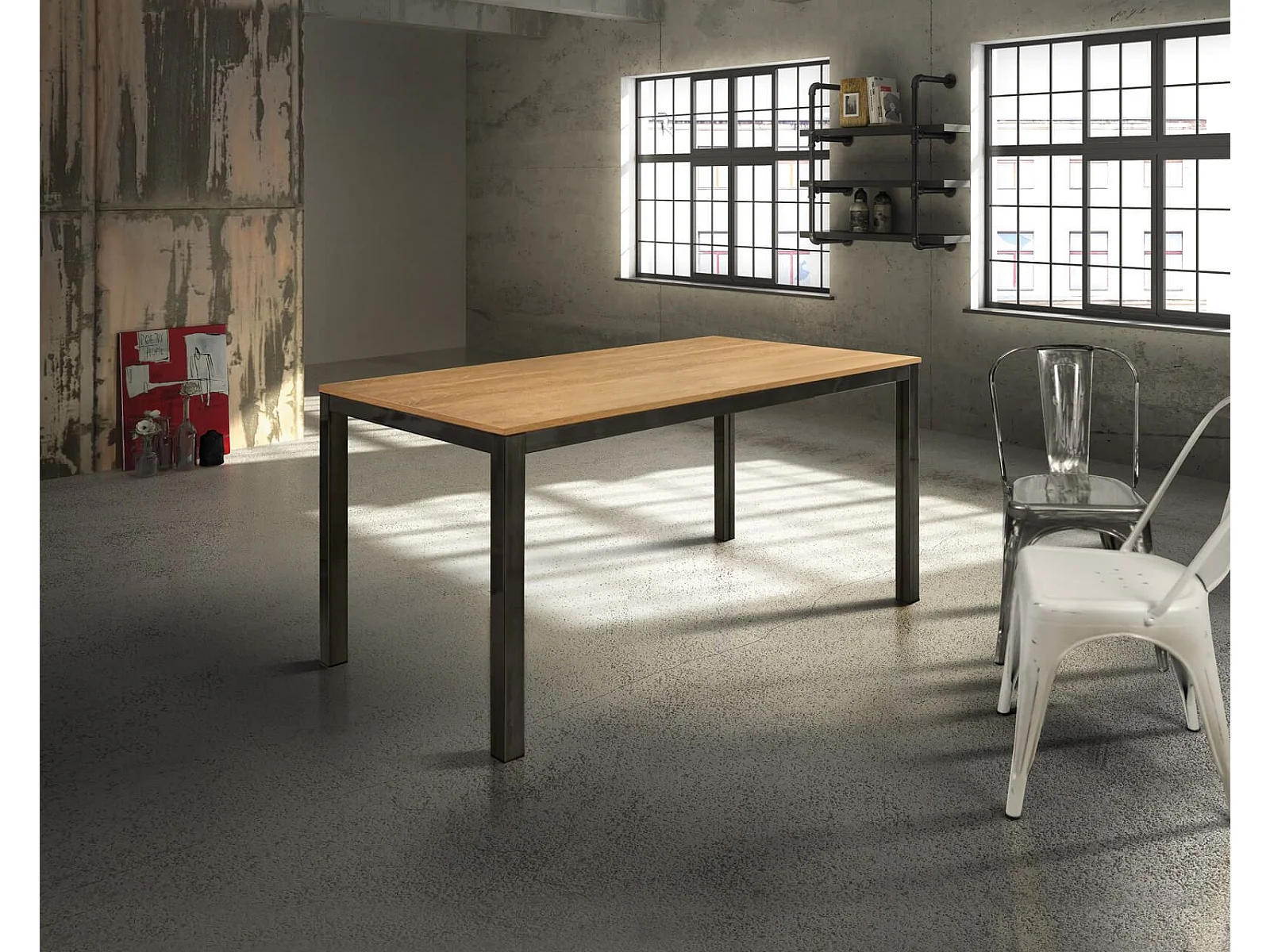 MilaniHome.it - Tavolo Da Pranzo Moderno Di Design Cm 140x90 Rovere Impiallacciato Struttura Nera Piano Naturale Per Sala Da Pranzo Ristorantedi coloreMarrone