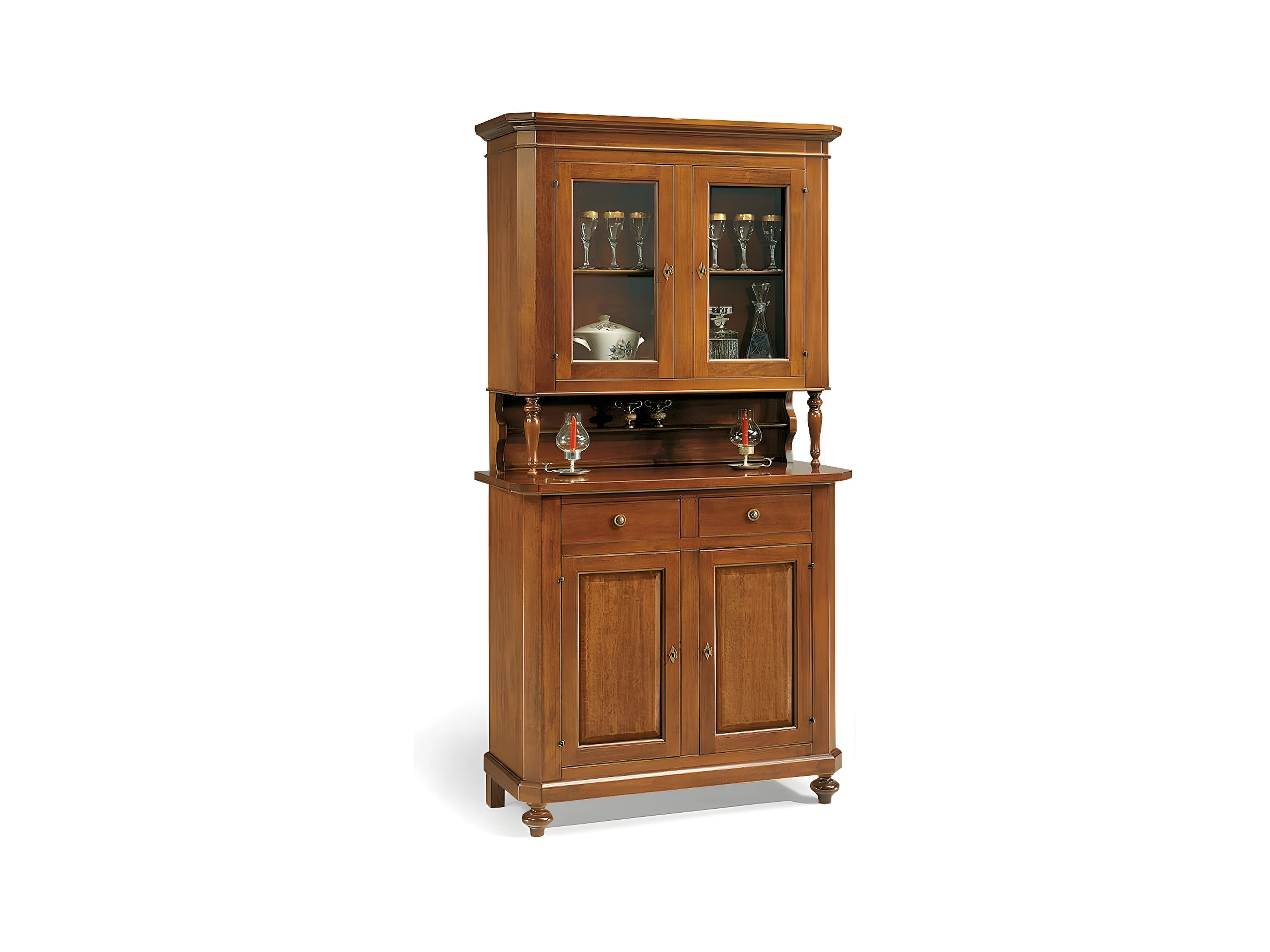 MilaniHome.it - Credenza Con Vetrina In Legno Massello 156x42x205di coloreTinta noce