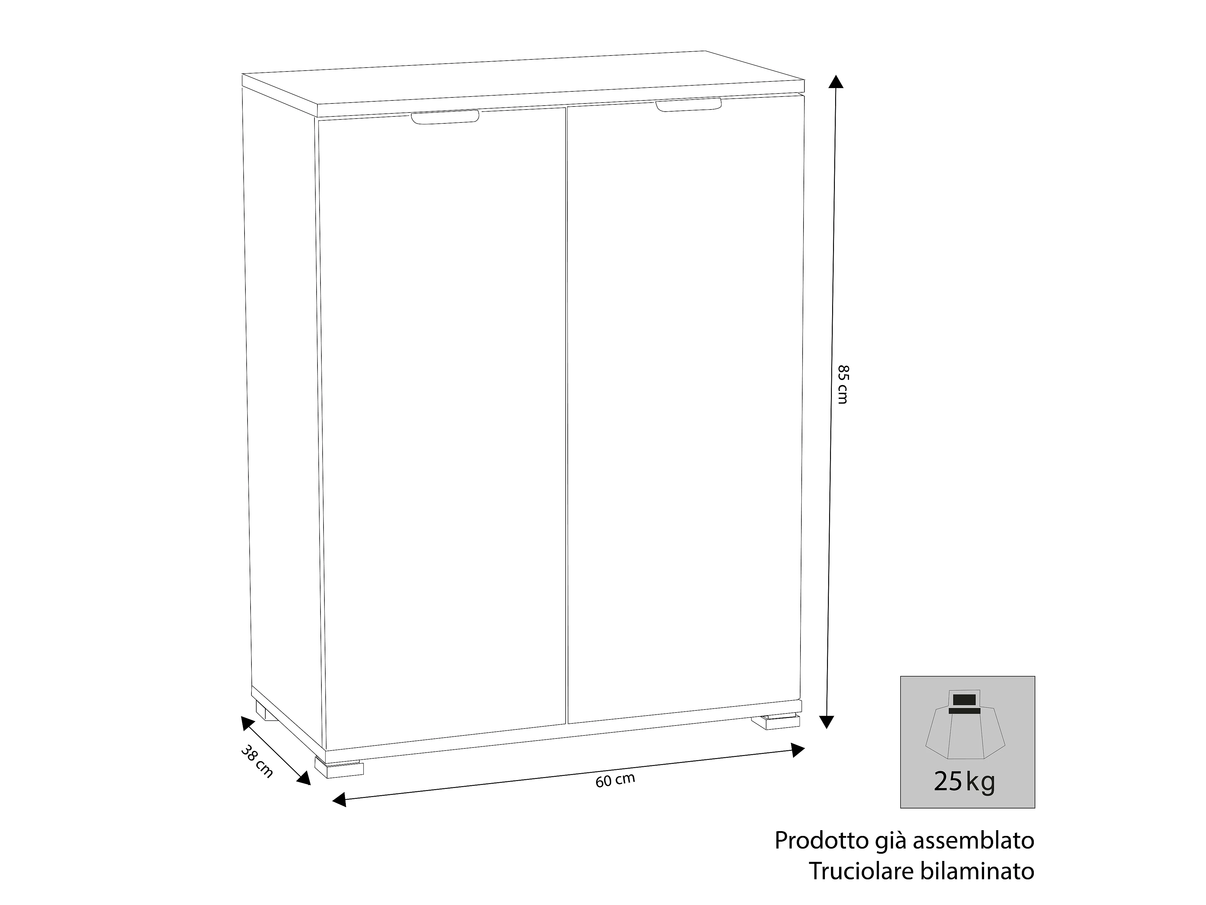 MilaniHome.it - armadietto 2 ante per soggiorno cucina bagno fatto in Italia cm 60x38x85 hdi coloreBianco