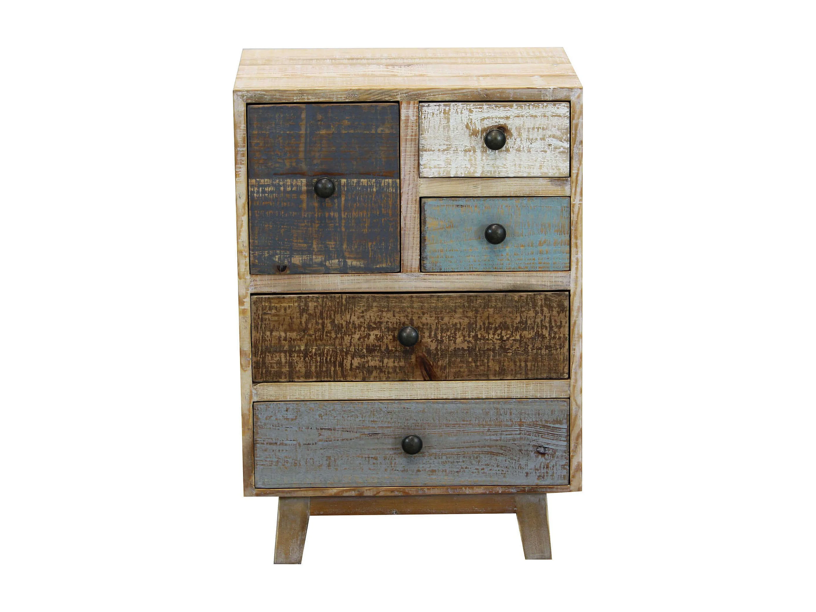 MilaniHome.it - Cassettiera In Legno Mobile Per Interno Con 6 E Un Anta Cassetti Di Design Stile Country Moderno Vintagedi coloreMulticolor