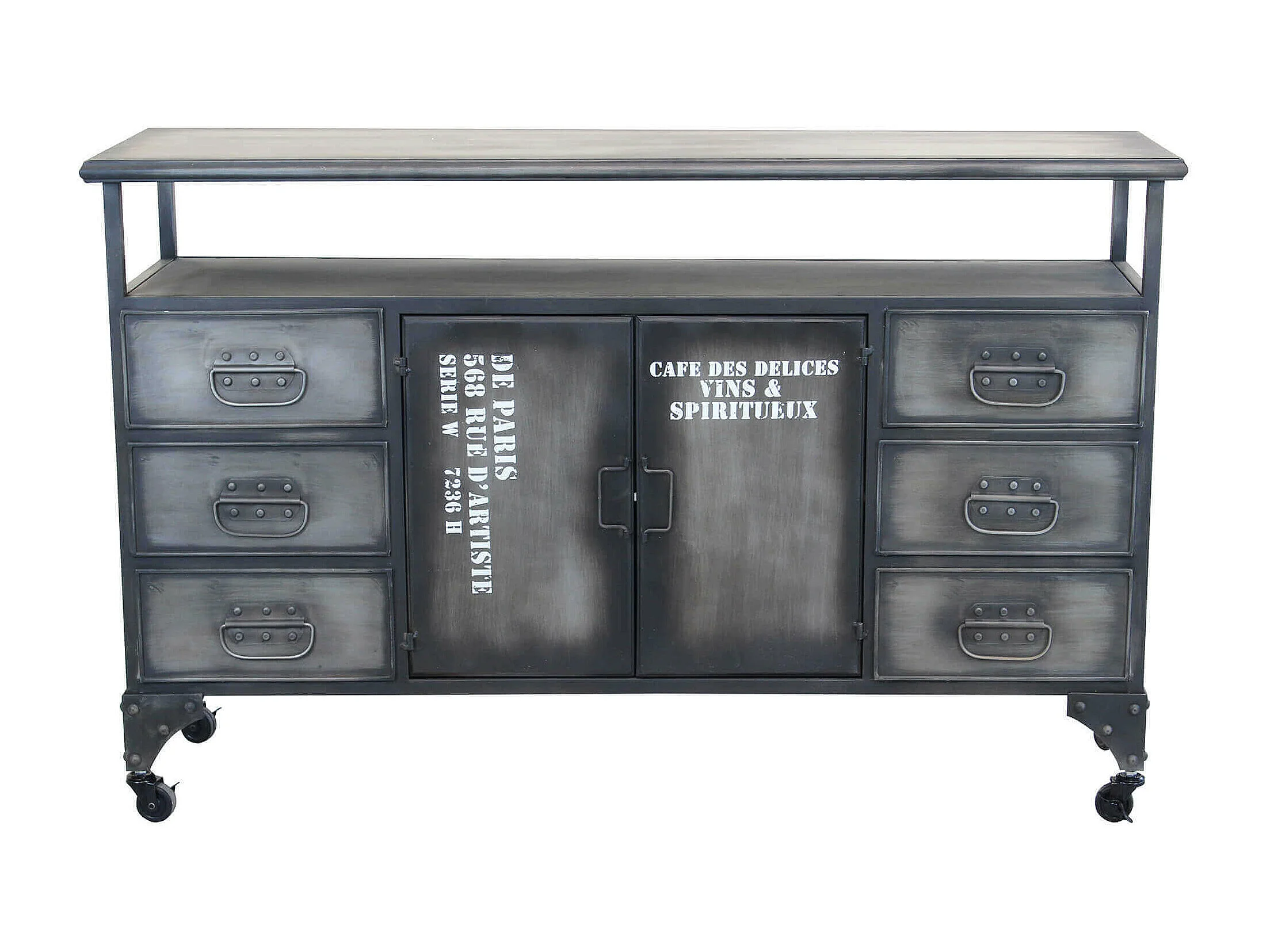 MilaniHome.it - Credenza In Metallo Ferro Industrial Mobile Madia Per Arredamento Soggiorno, Sala Da Pranzo, Salotto Industriale , Cm 132,5x37,5x82 Hdi coloreGrigio