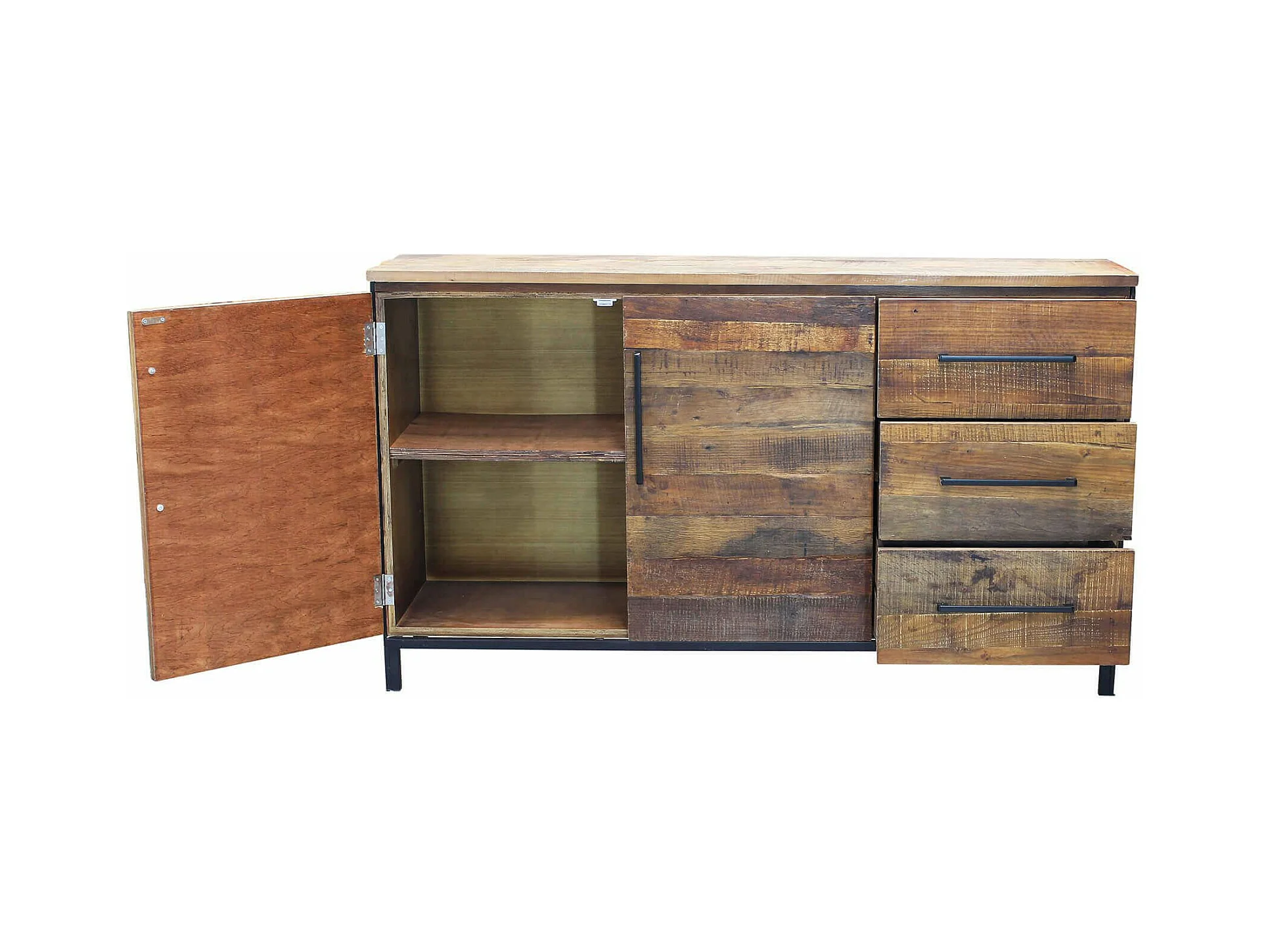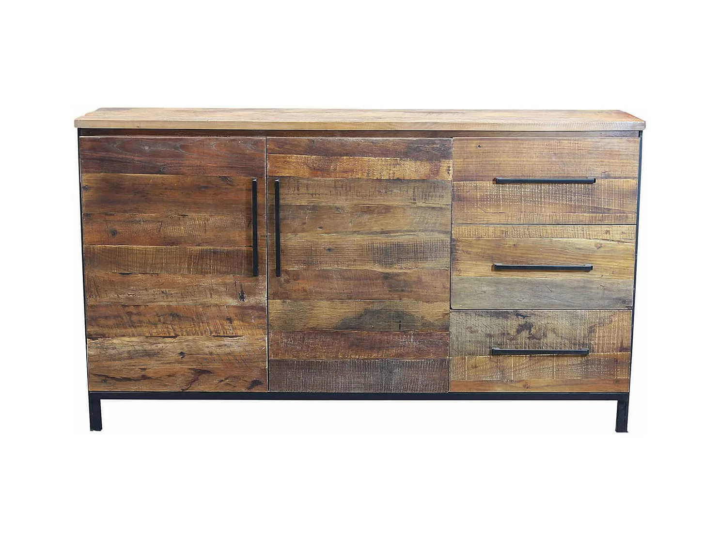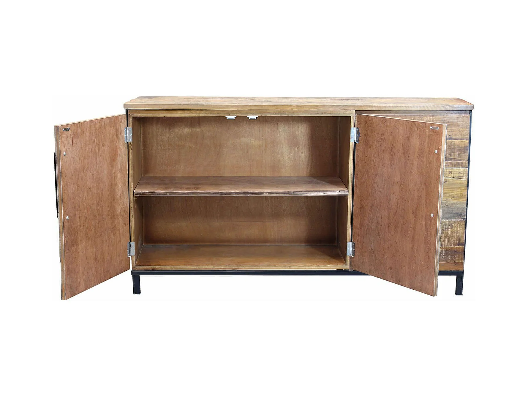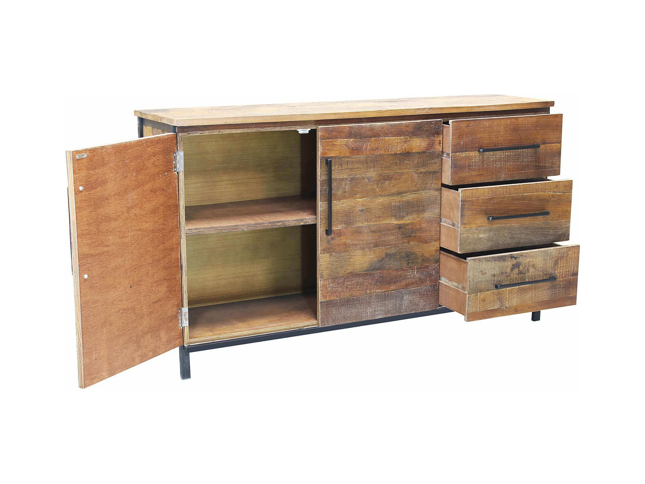 MilaniHome.it - Mobile con decoro naturale con 3 ante in legno di mango con struttura in ferro cm 150x40x85 hdi coloreMarrone