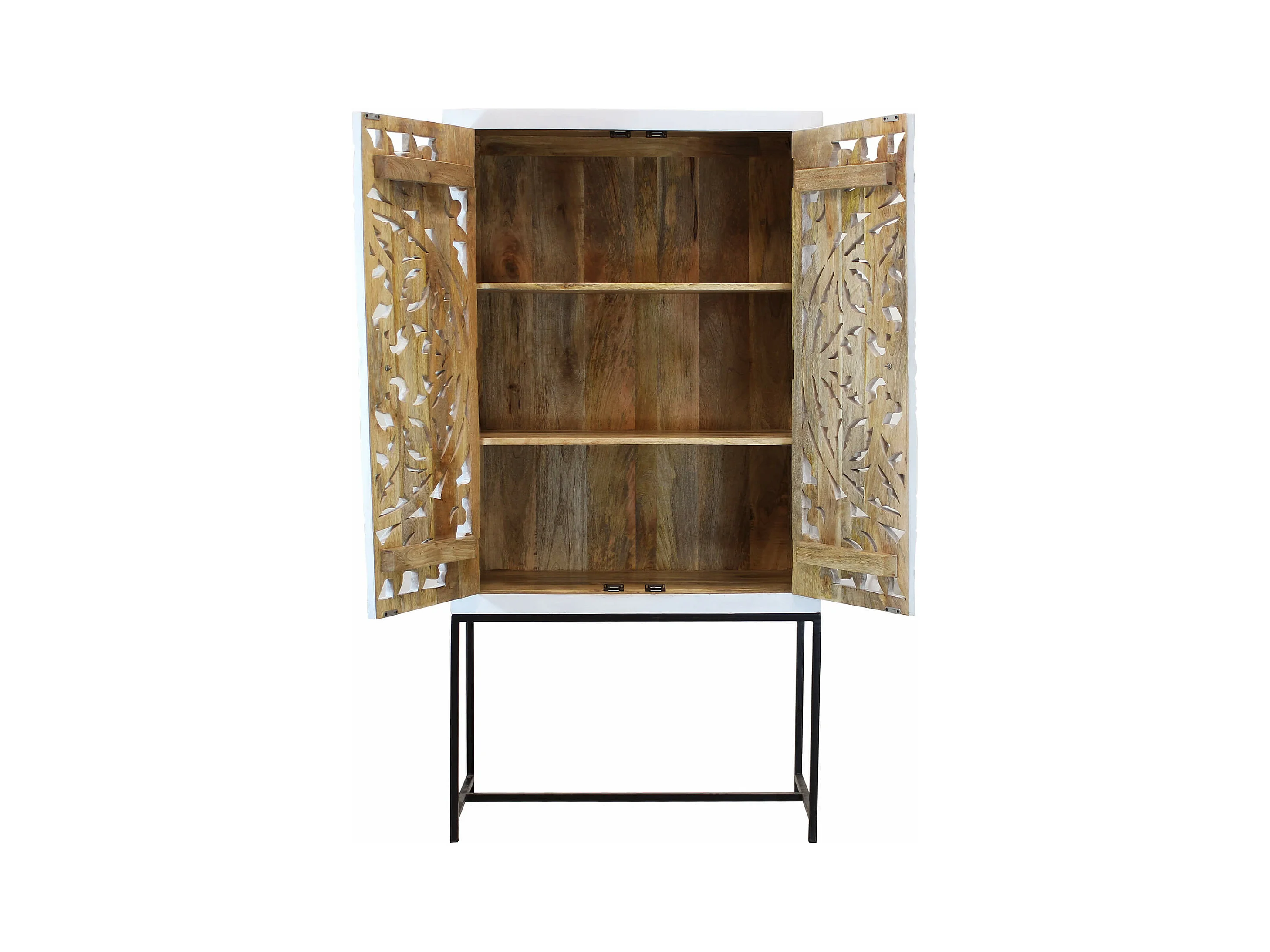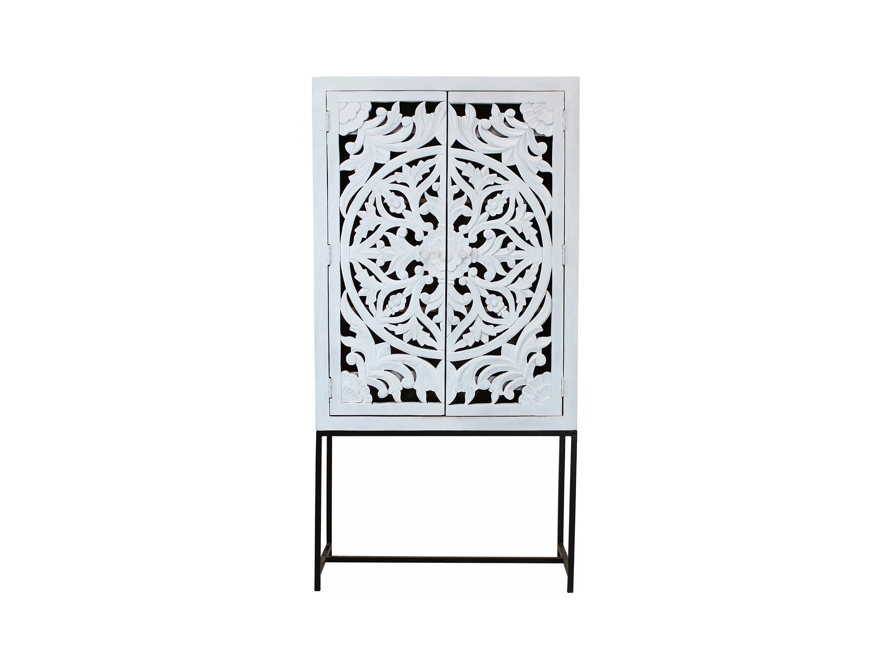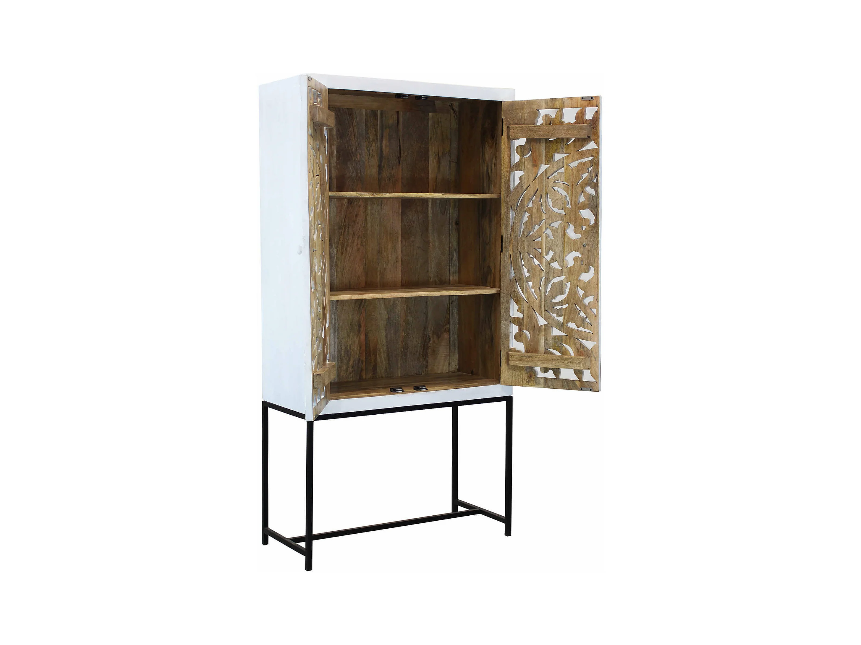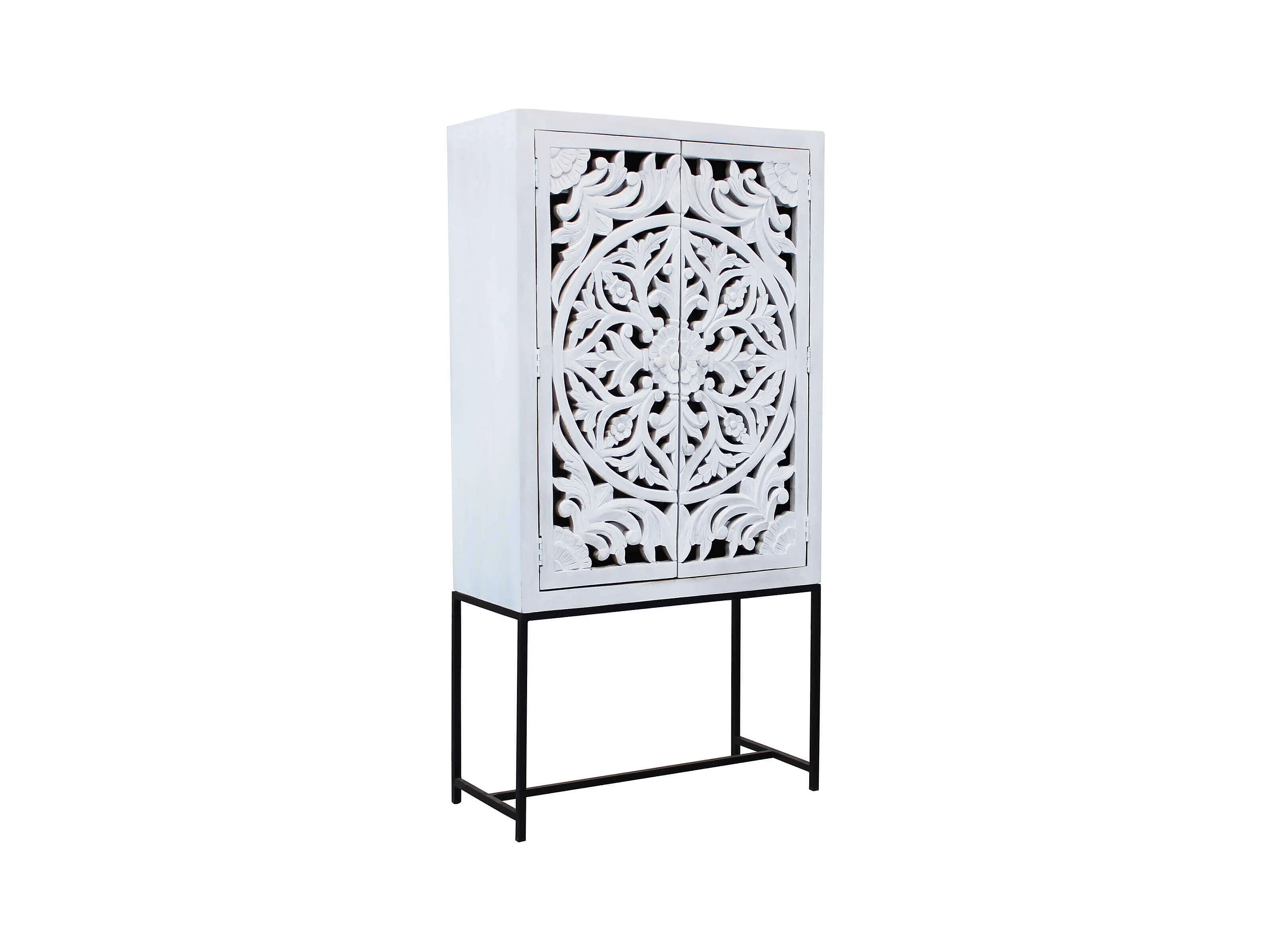 MilaniHome.it - Mobile con decoro sbiancato con 2 ante in legno di mango con struttura in ferro cm 90x40x176 hdi coloreMarrone