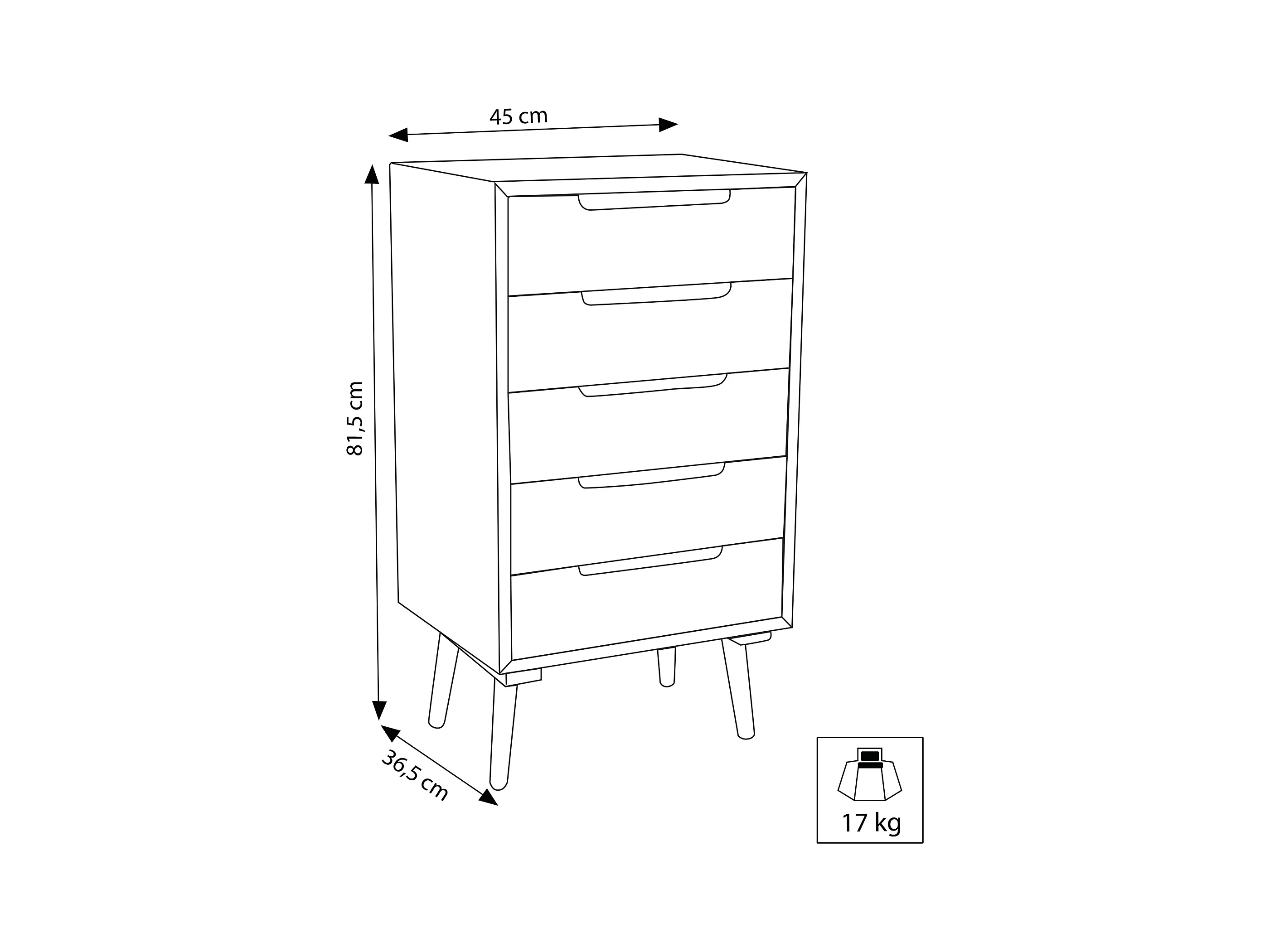 MilaniHome.it - Mobiletto 5 Cassetti Per Interno Camera Cameretta Salotto Ingresso Cucina Cm 45x36,5x81,5di coloreMulticolor