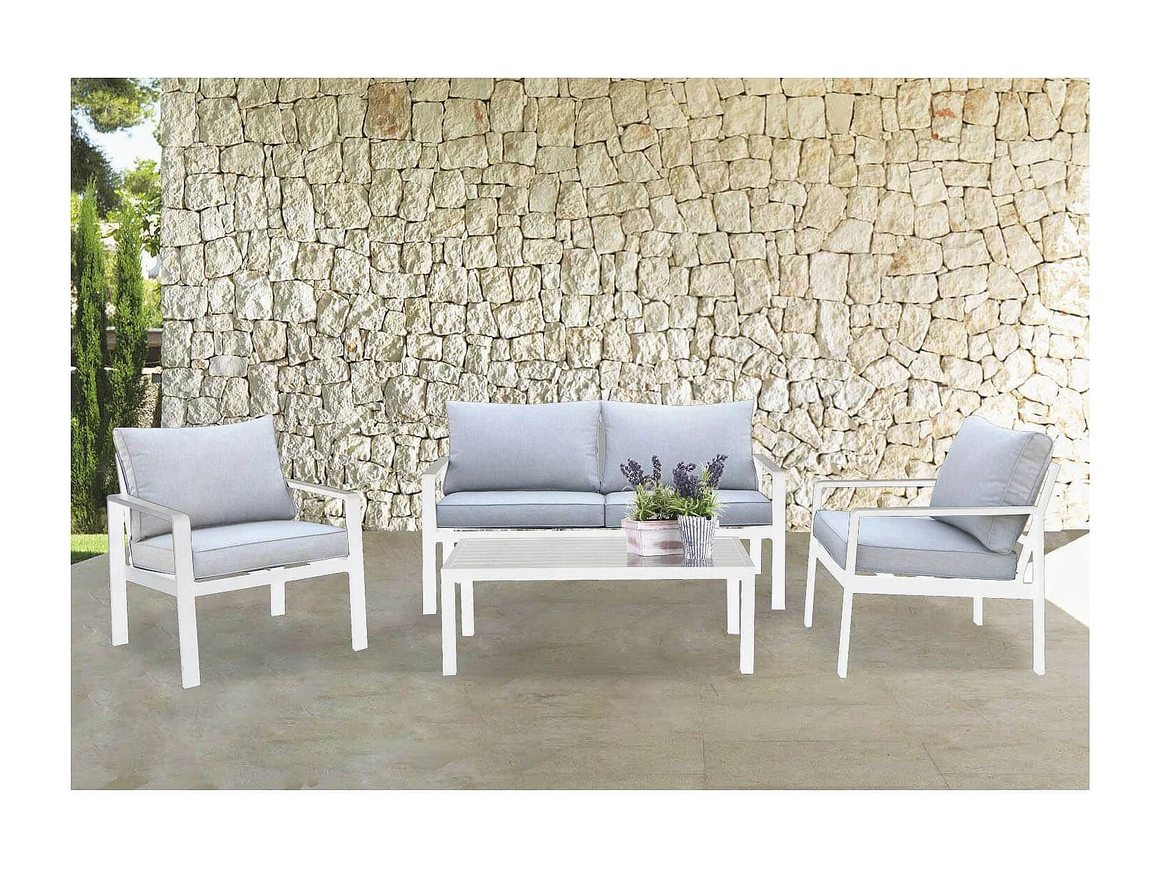 MilaniHome.it - Salotto da Giardino in Alluminio con Cuscini in Poliestere e Tavolino Rettangolare in Color Biancodi coloreBianco