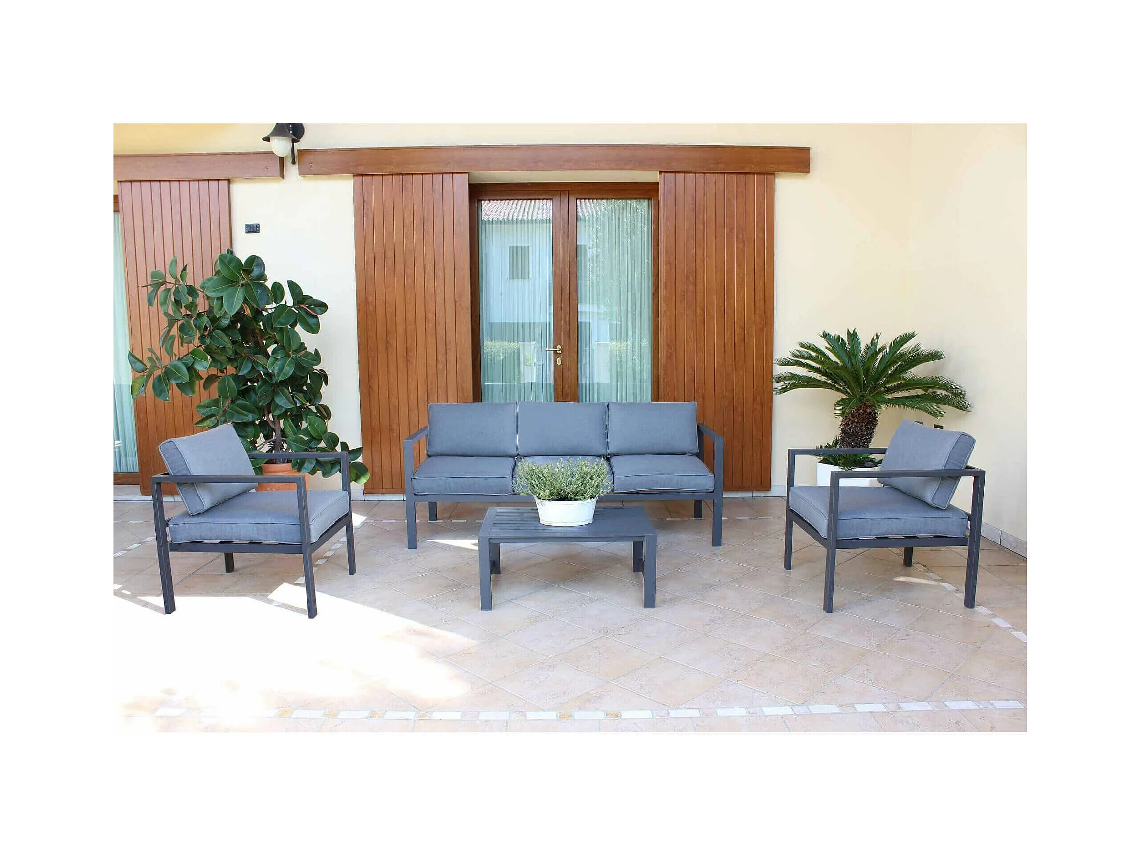 MilaniHome.it - Salotto Da Giardino In Alluminio Antracite Da Esterno Portico Per Locale Bar Agriturismo Hotel Albergo Pasticceriadi coloreAntracite