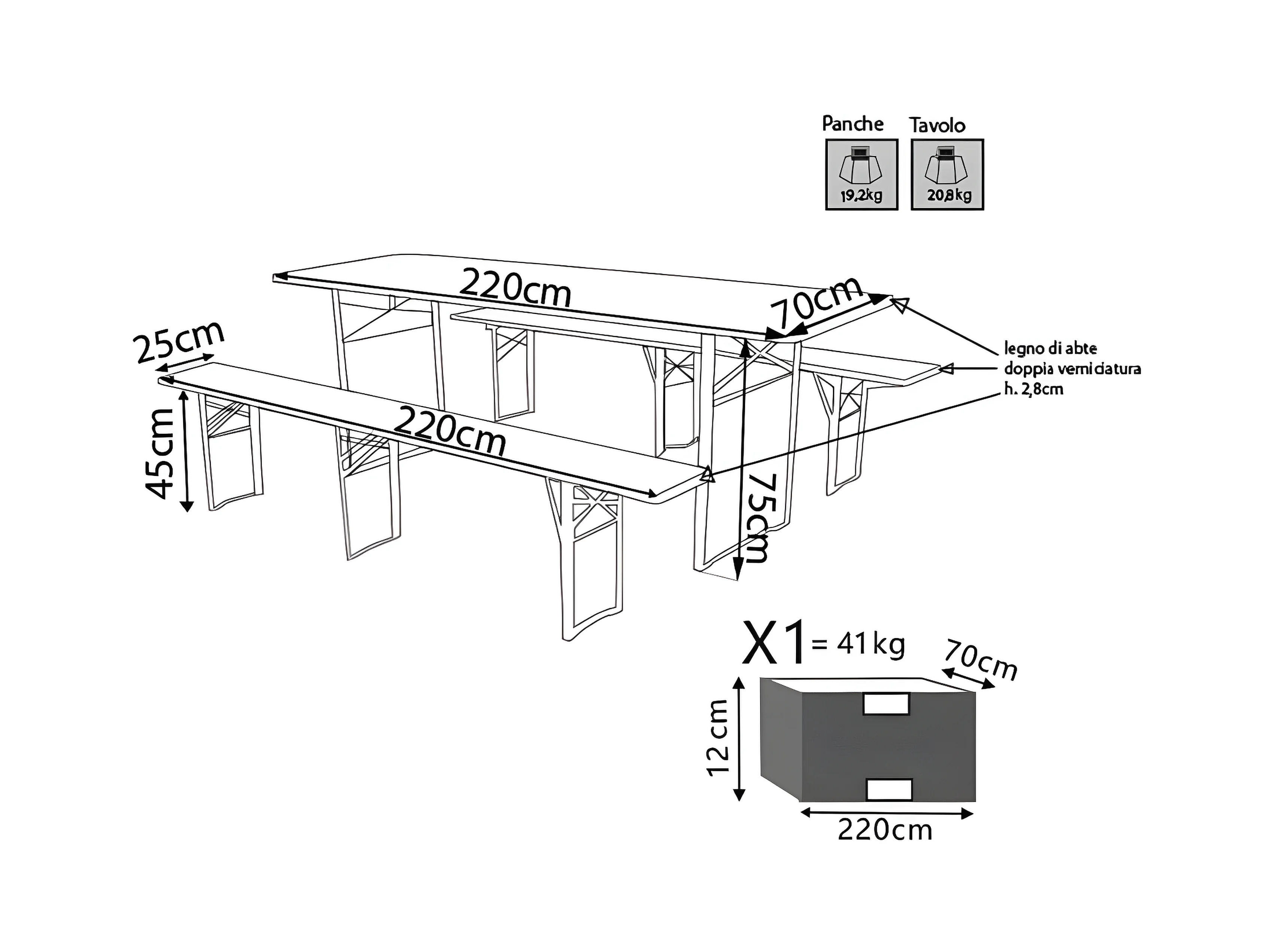 MilaniHome.it - Set Birreria 220x70 Con Panca A 3 Gambe Per Esterno Giardino, Portico, Terrazzo, Campeggio Matrimonio Sagradi coloreMarrone