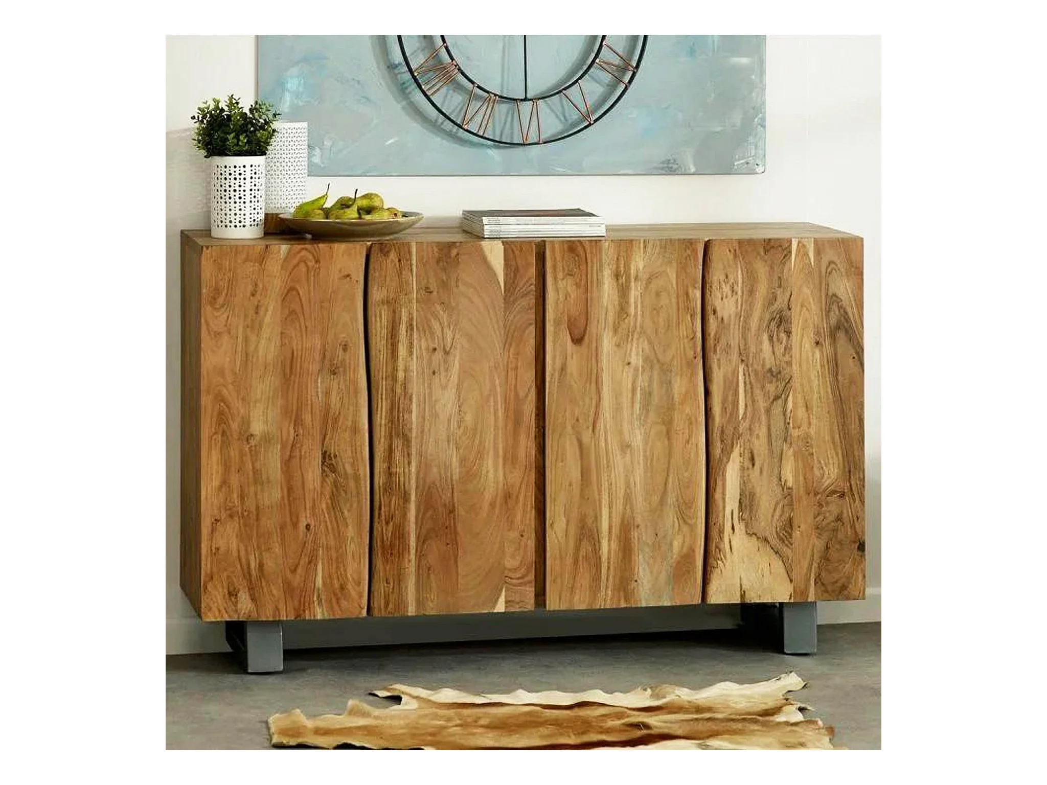 MilaniHome.it - Mobile con decoro naturale con 3 ante in legno di mango con struttura in ferro cm 150x40x85 hdi coloreMarrone