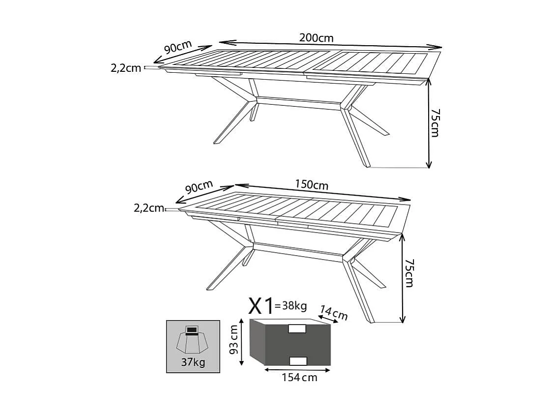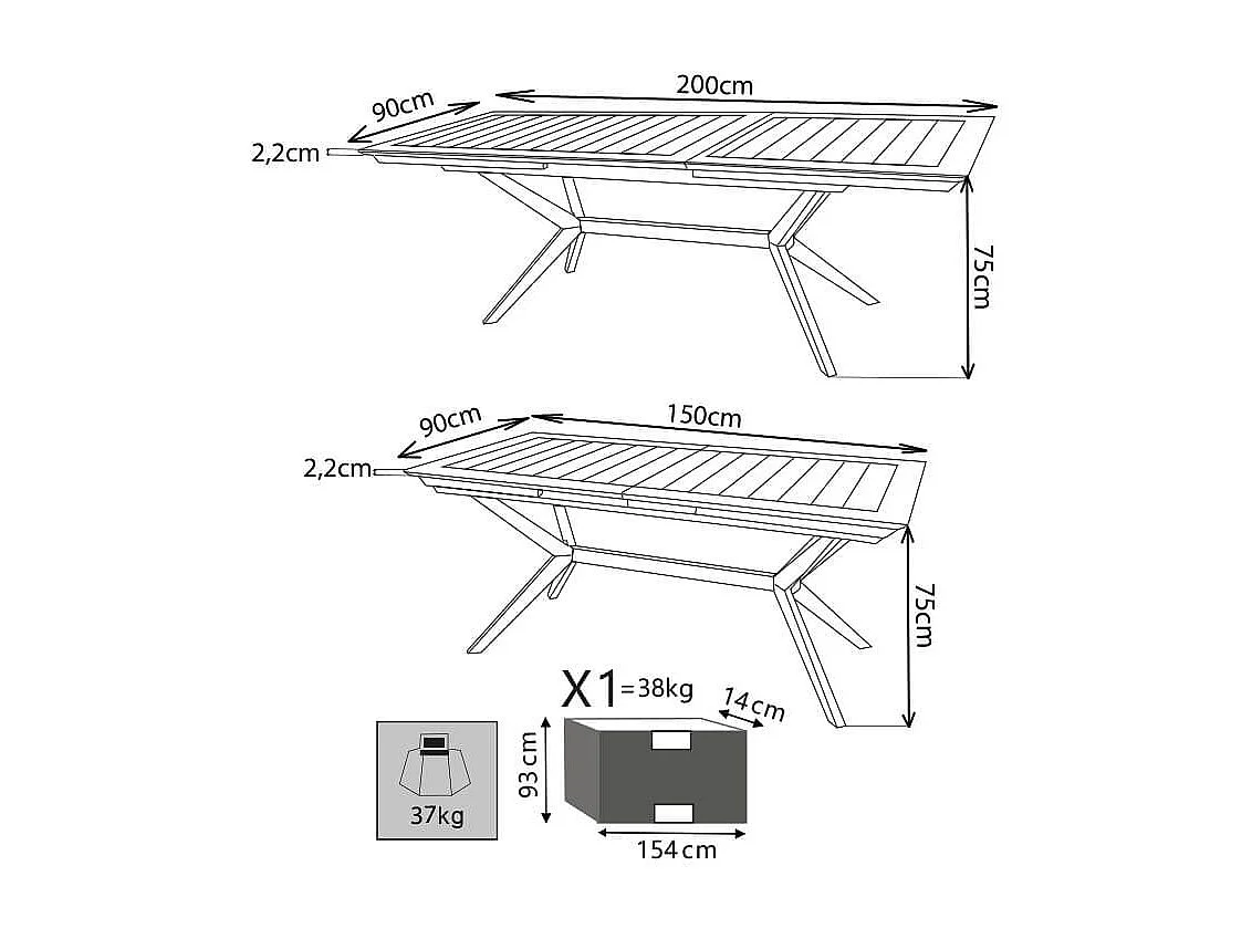 MilaniHome.it - Tavolo Rettangolare Allungabile In Legno Di Acacia 150/200x90 Per Esterno Giardino Portico Ristorante Bar Hotel Albergodi coloreMarrone