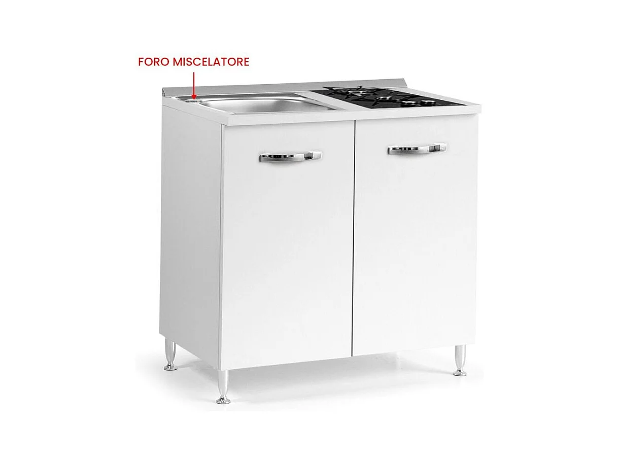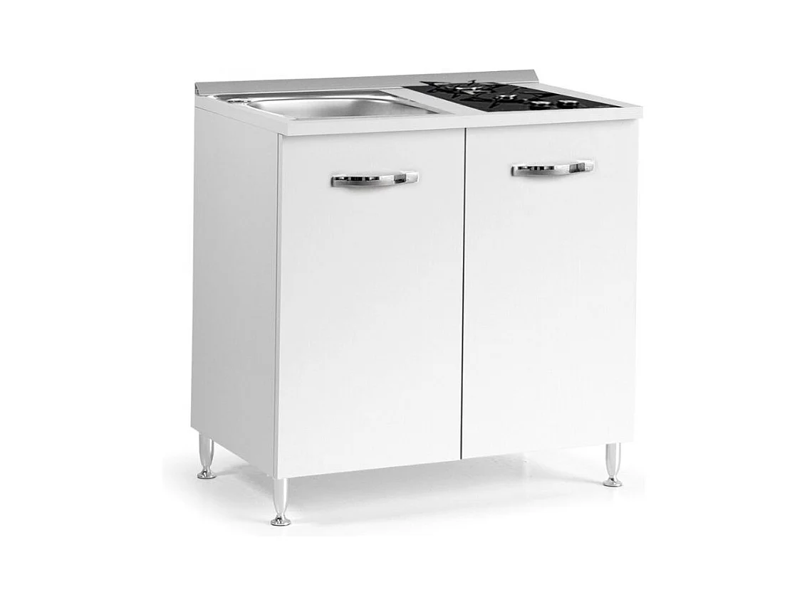 Mini cucina Cucinino80 bianco larice con lavello e piano cottura a gas 80x60x85H