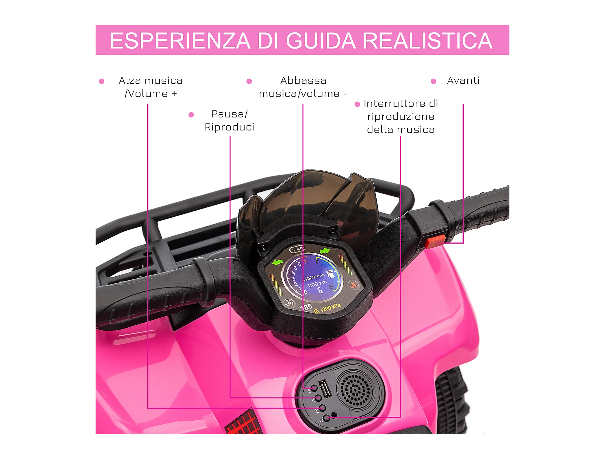 Mini quad elettrico per bambini 18-36 mesi con batteria 6v rosa