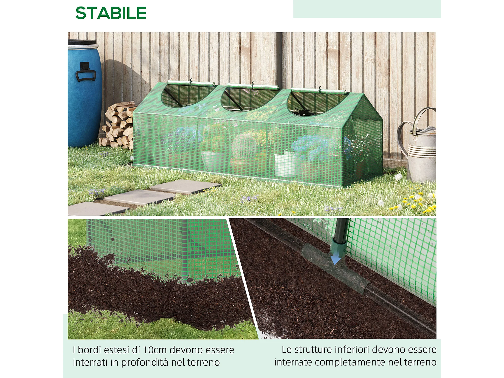 Mini serra 3 finestre avvolgibili copertura pe 180x60x60cm