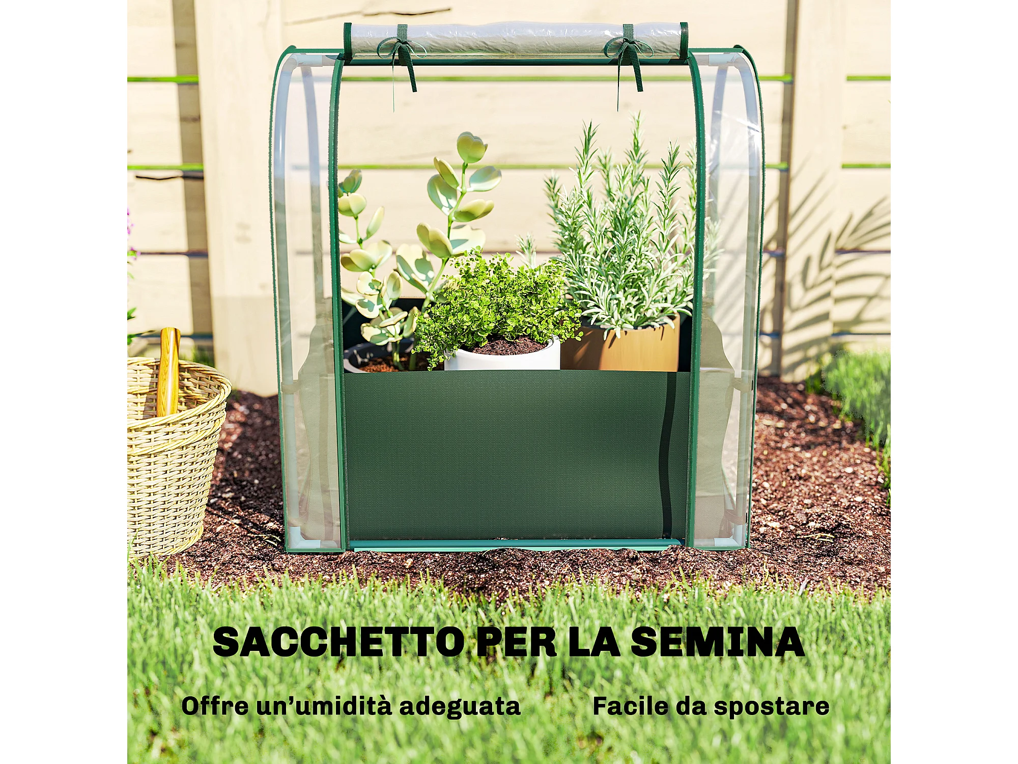 Mini serra con borsa di coltivazione e porta avvolgibile verde