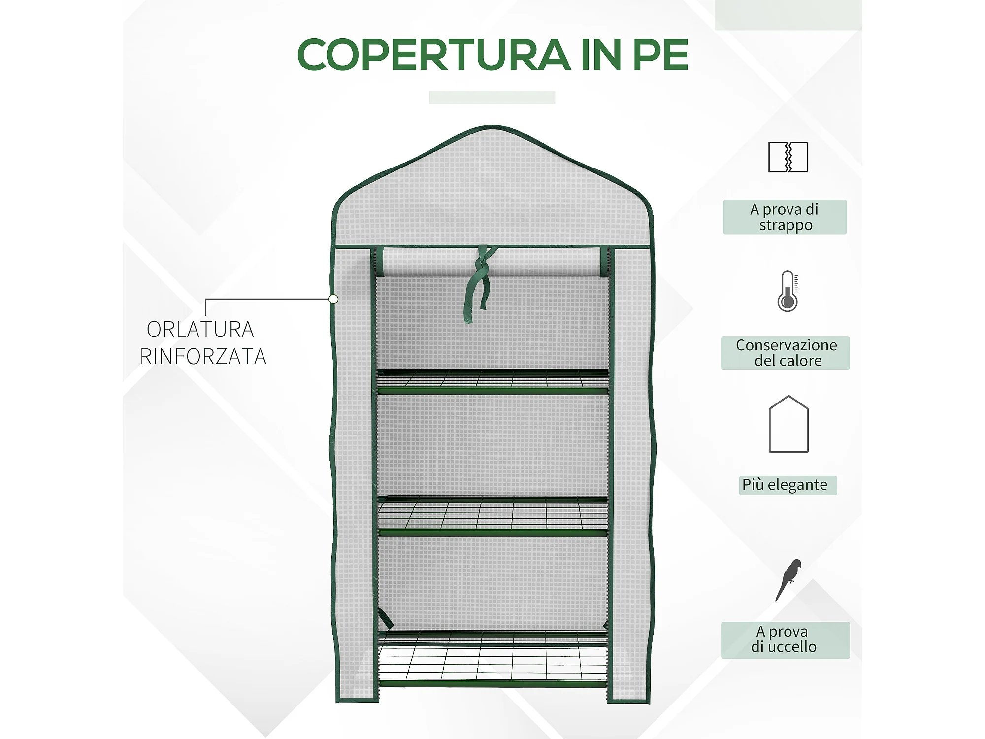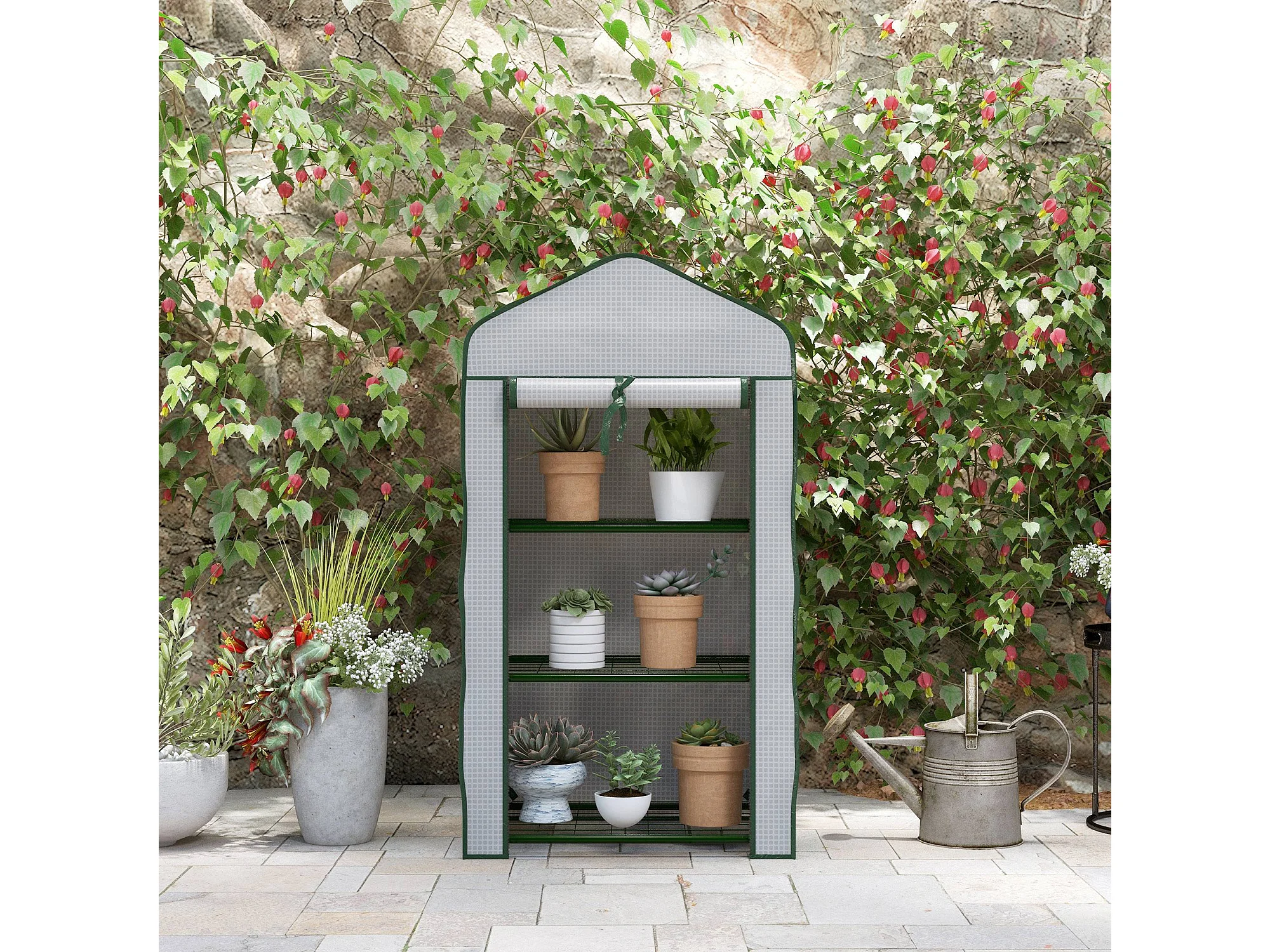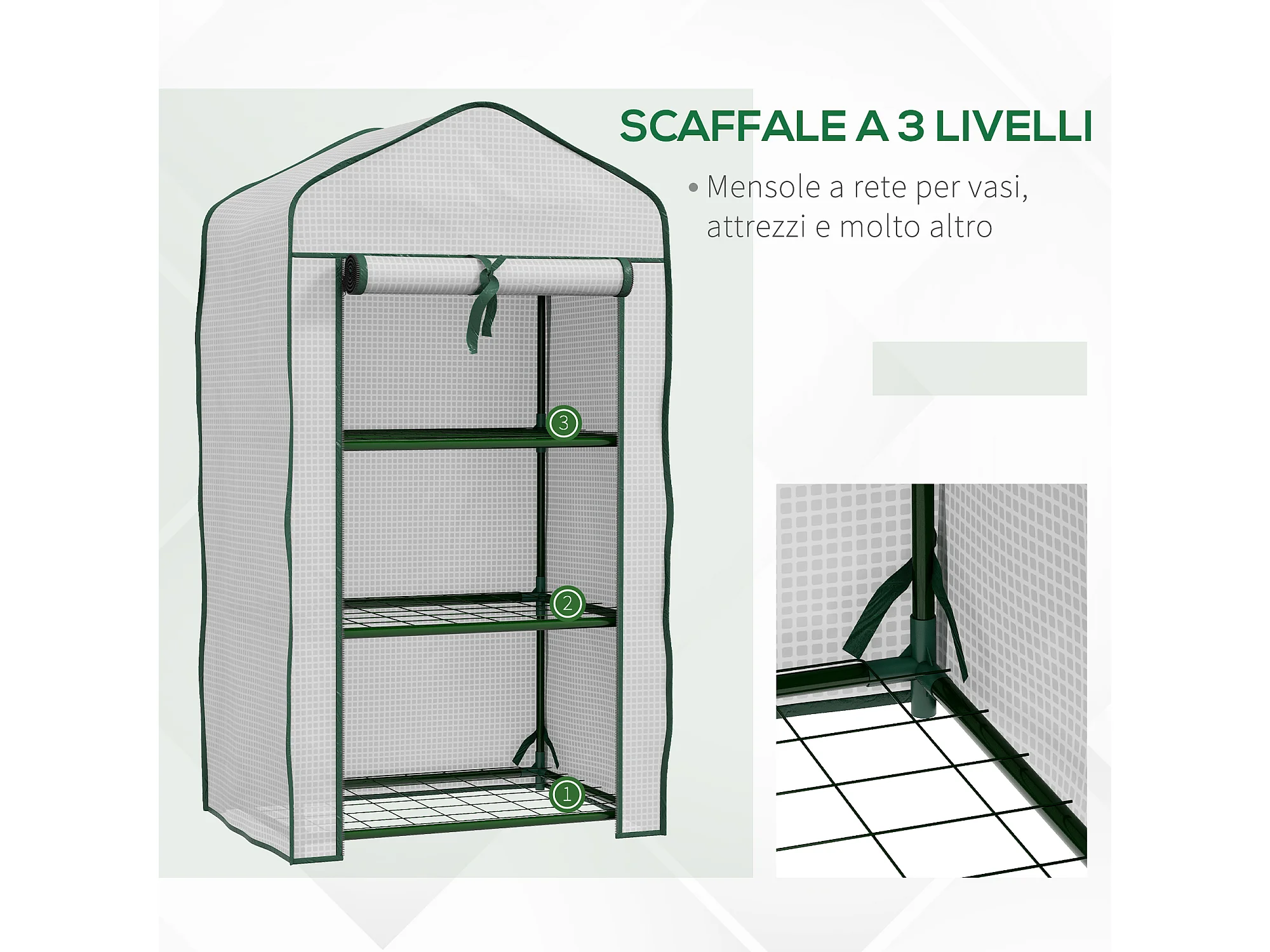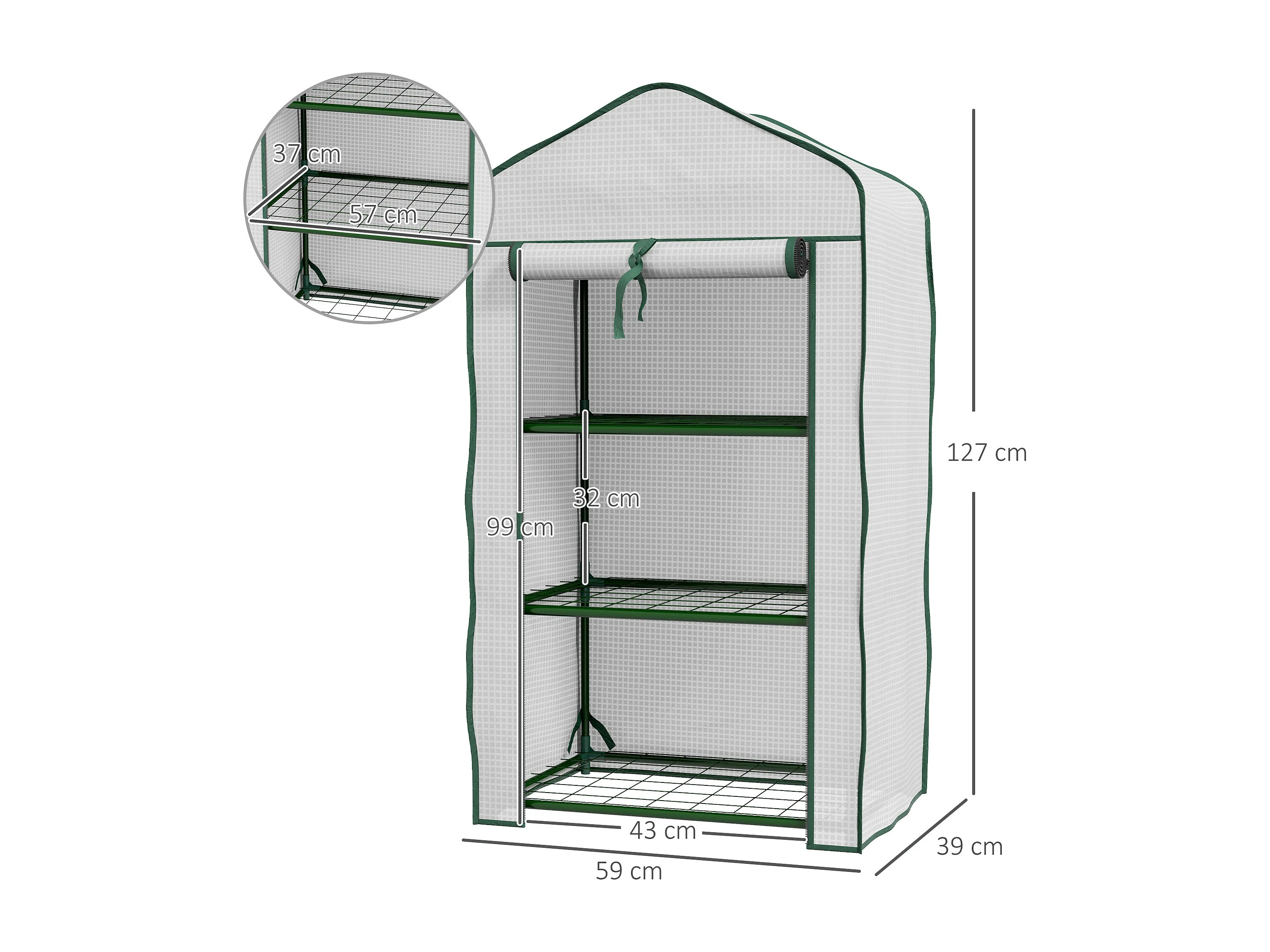 Mini serra da giardino con 3 ripiani e copertura in PE 59x39x127cm