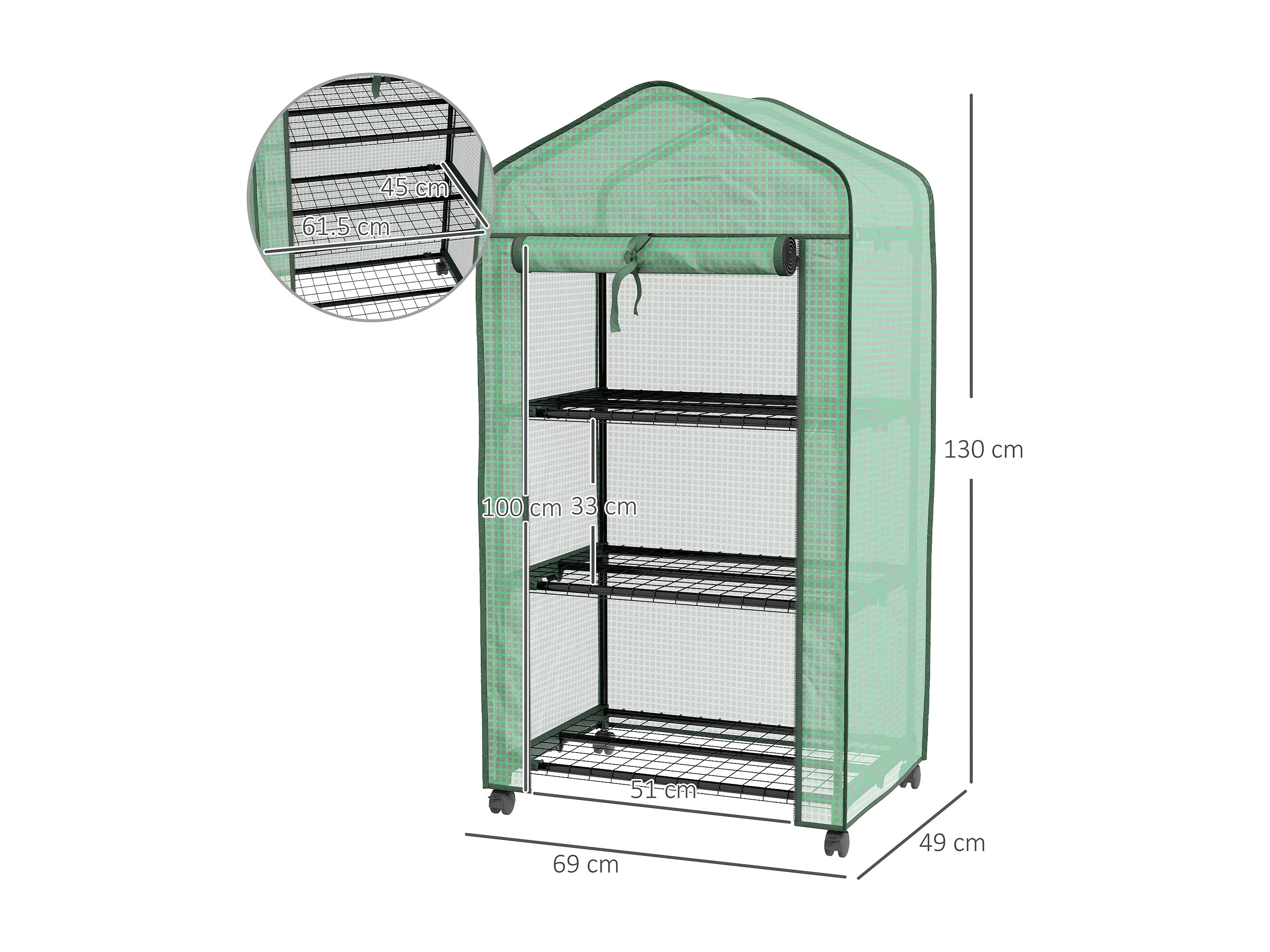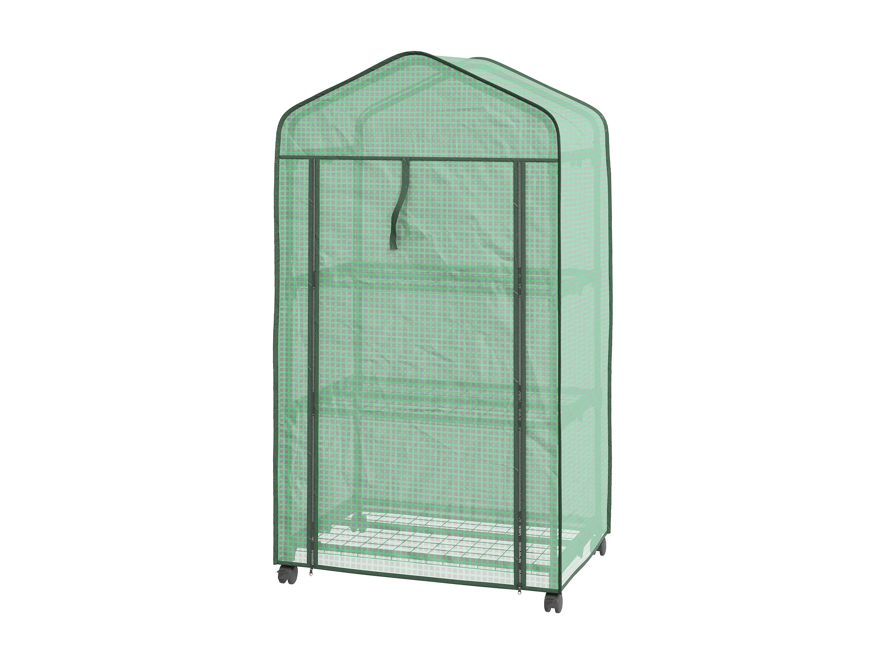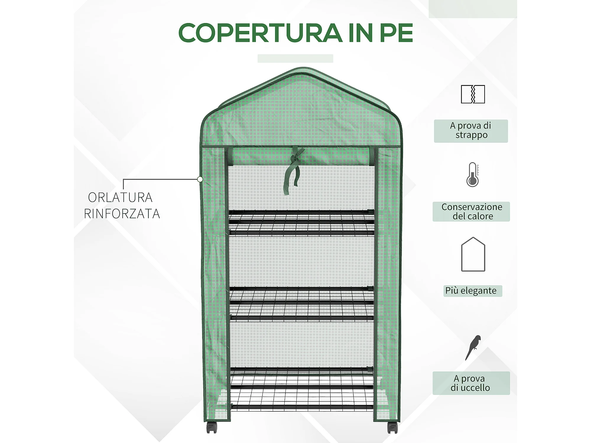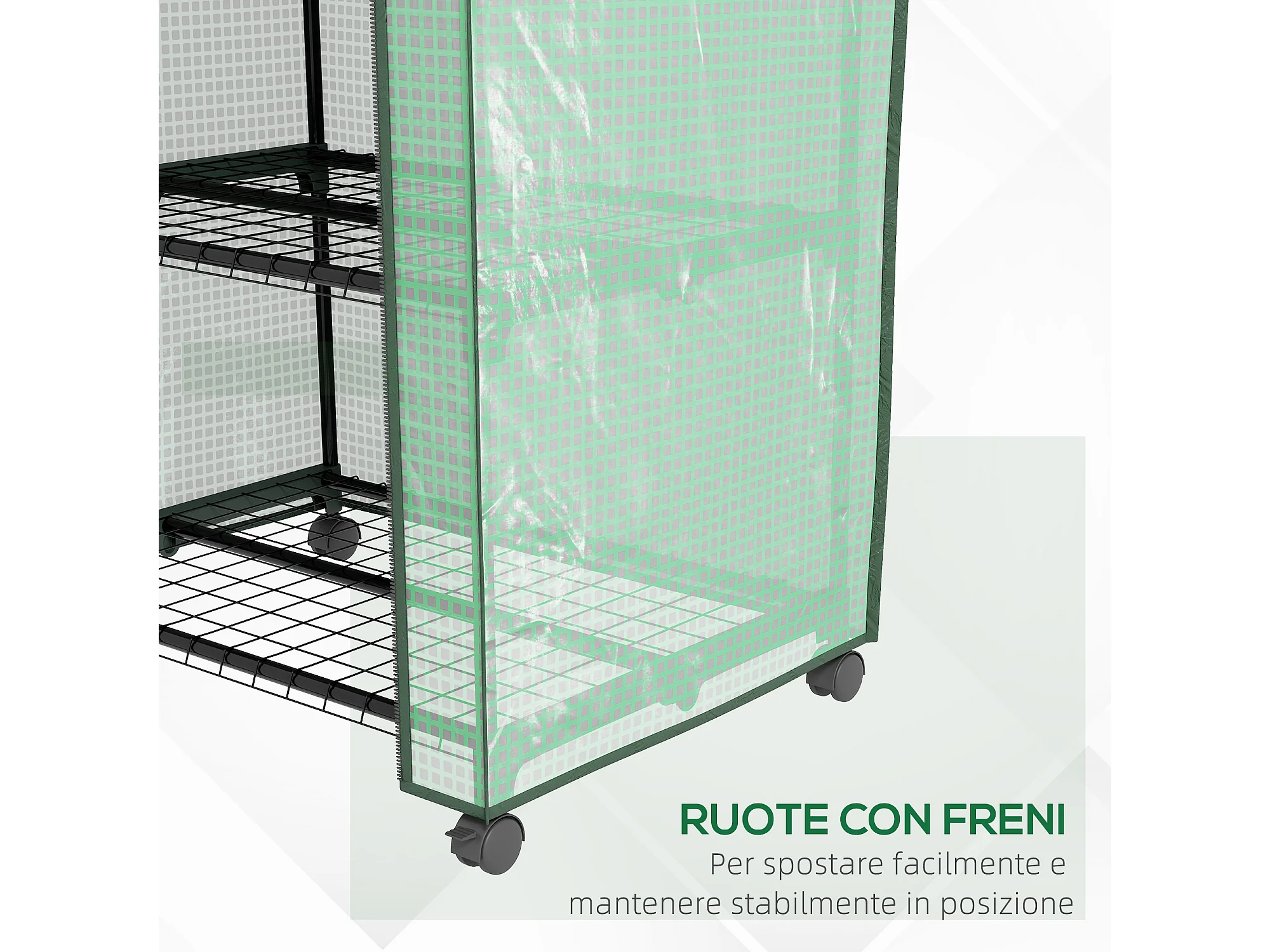 Mini serra da giardino con 3 ripiani, ruote e copertura in PE verde