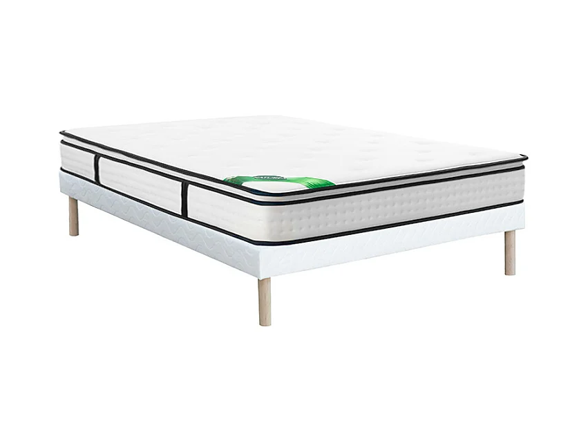Set 140 x 190 cm rete letto imbottita + materasso a molle insacchettate 7 zone con topper integrato e rivestimento in bambù sp. 26 cm - MIREZA di NATUREA