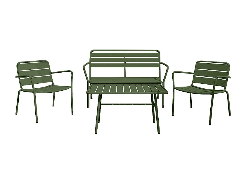 Set da giardino in metallo: una panchina, 2 poltrone basse e un tavolino - Cachi - MIRMANDE di MYLIA