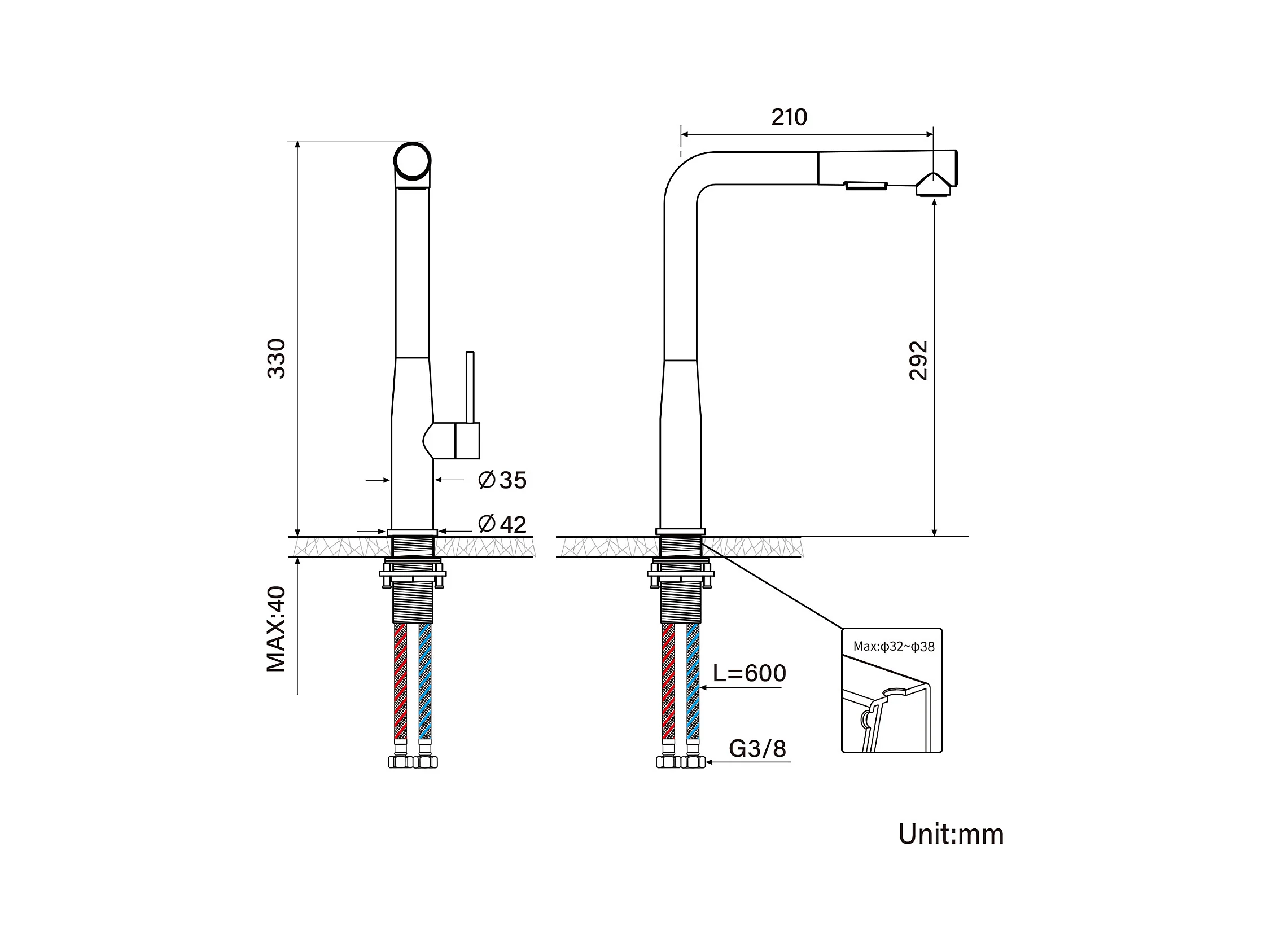 Miscelatore Cucina Nero con Doccetta estraibile,Inox, Miscelatore Lavello 2 Modalità Getti Acqua Calda/Fredda,Rubinetto Telescopico Lavello