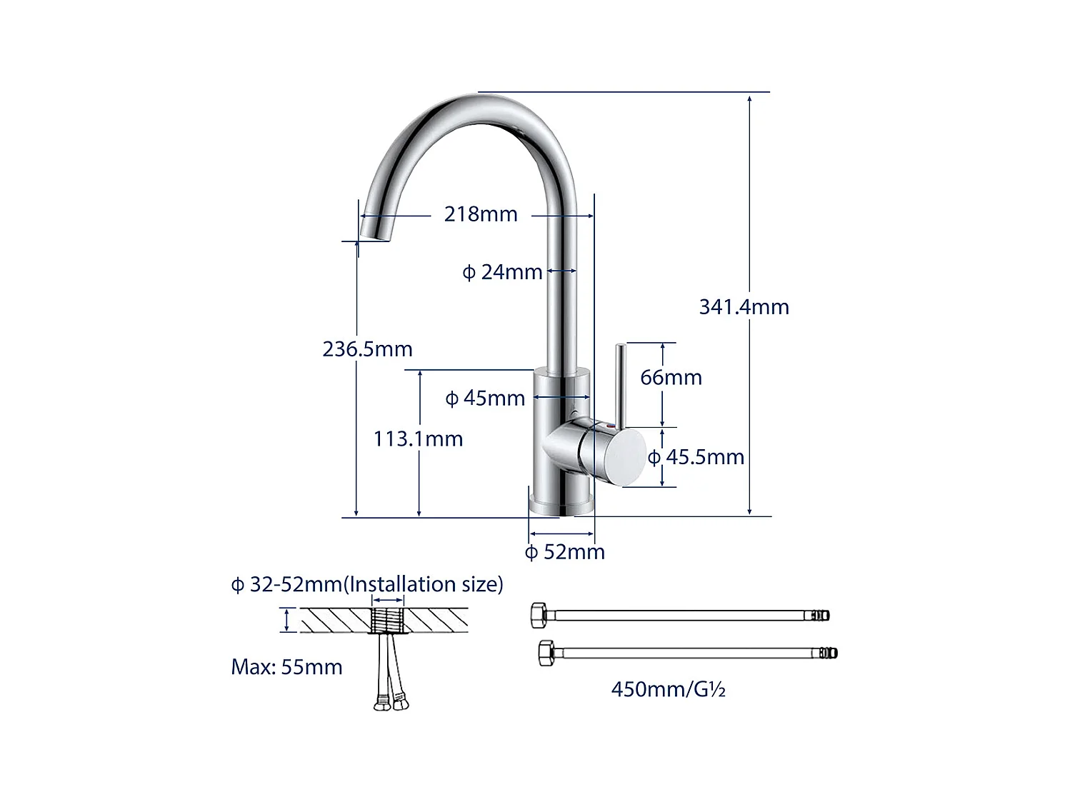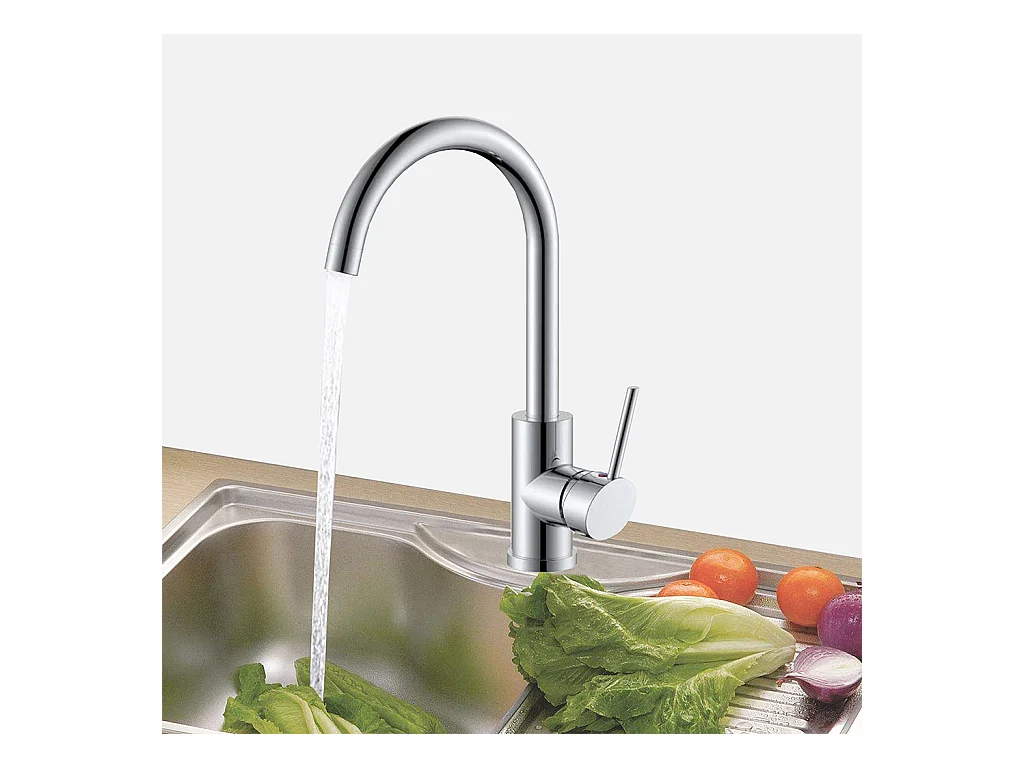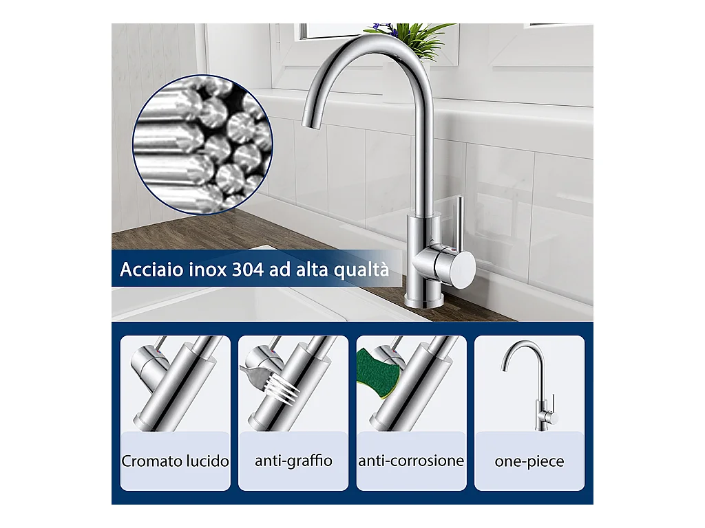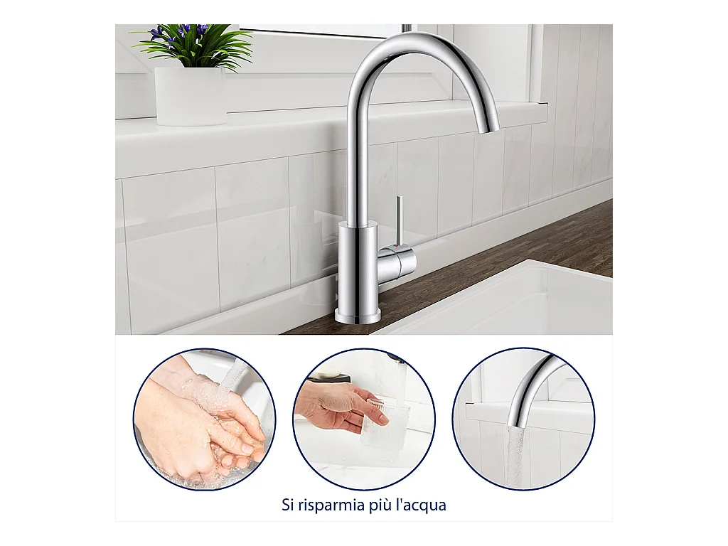 AICA Rubinetto miscelatore cucina per lavello collo di cigno, cromato