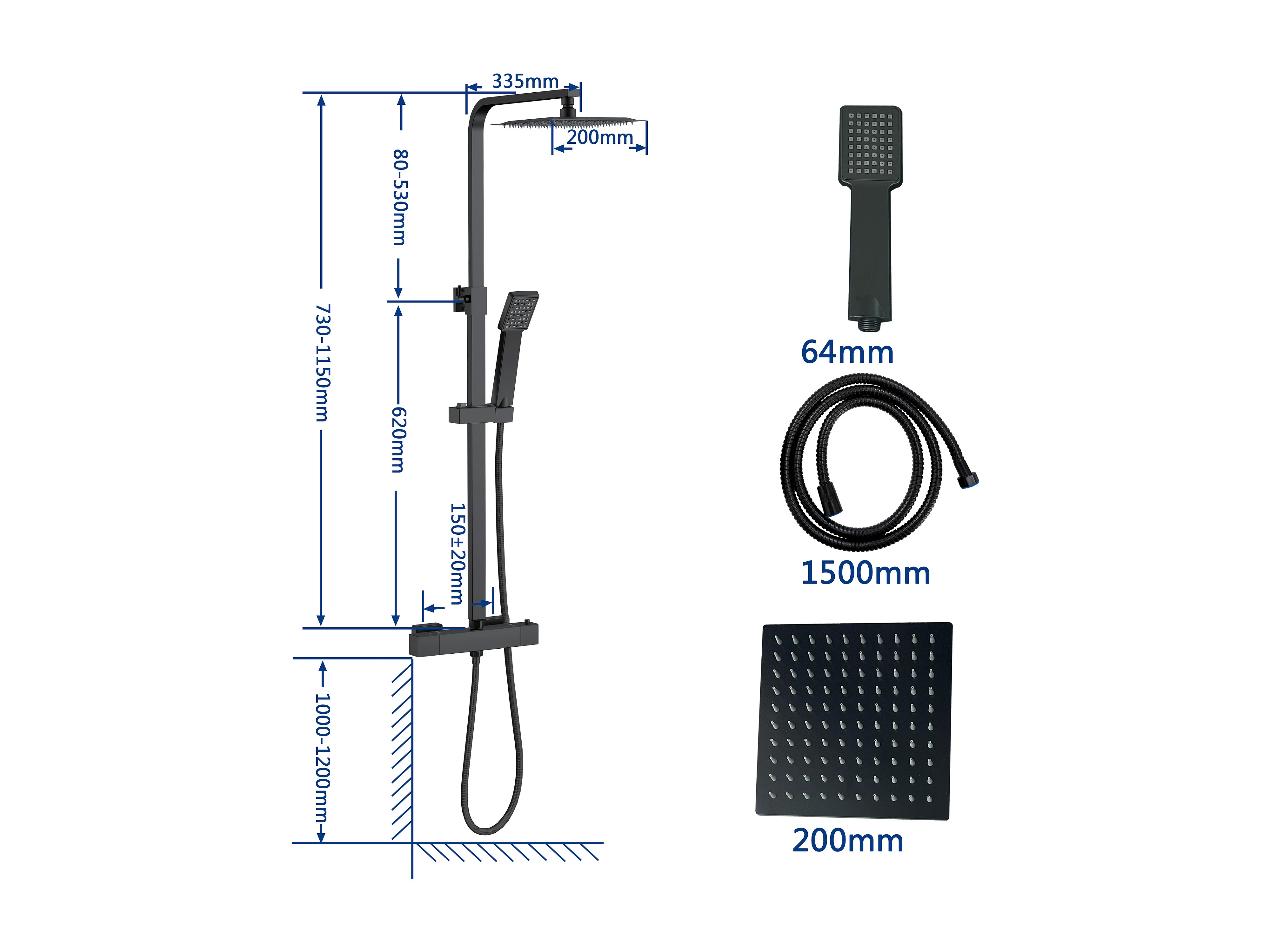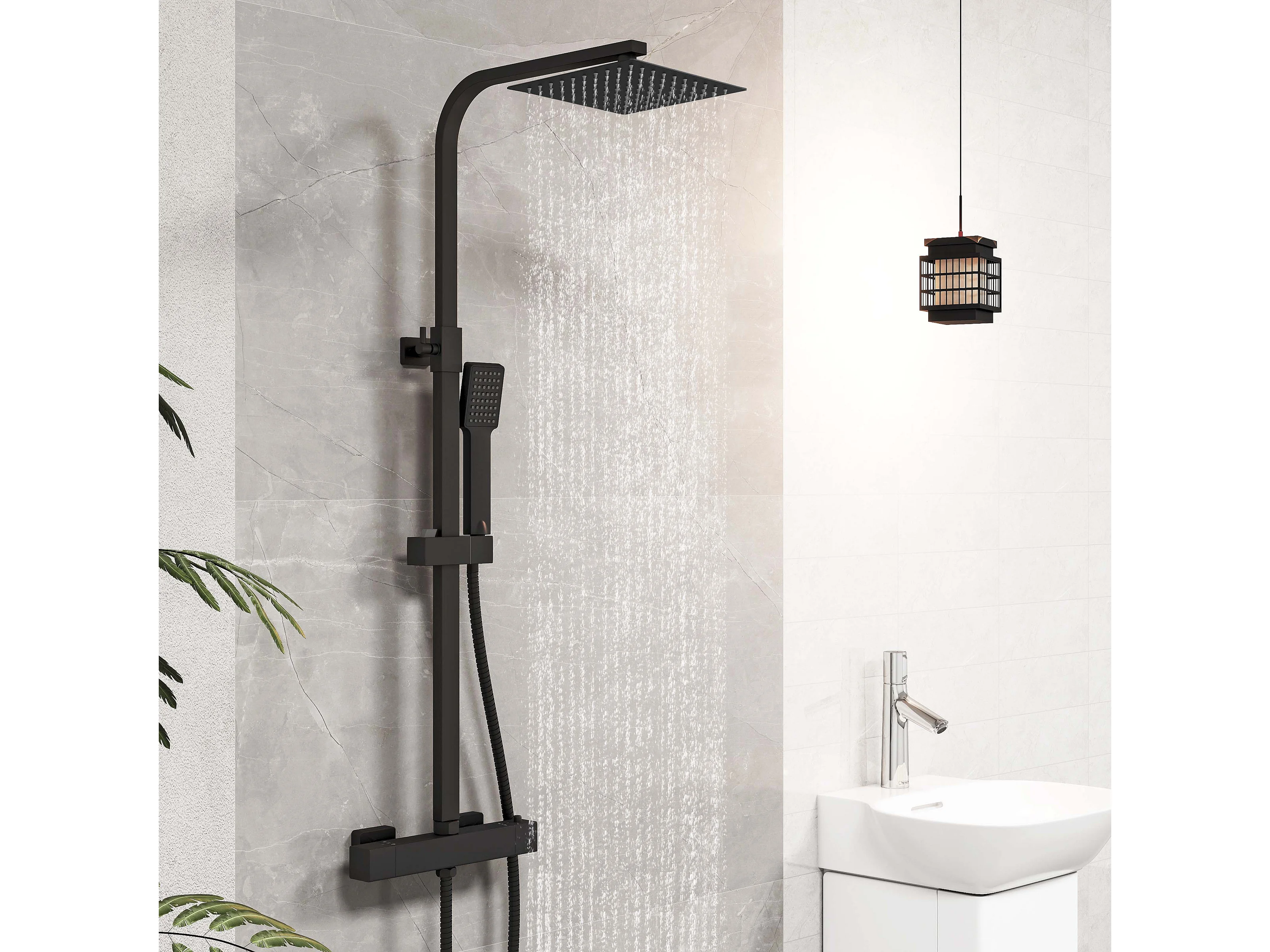 Colonna doccia con miscelatore, kit completo di doccia a pioggia, soffione doccia 20 x20 cm e doccetta 3 getti, asta doccia, nero