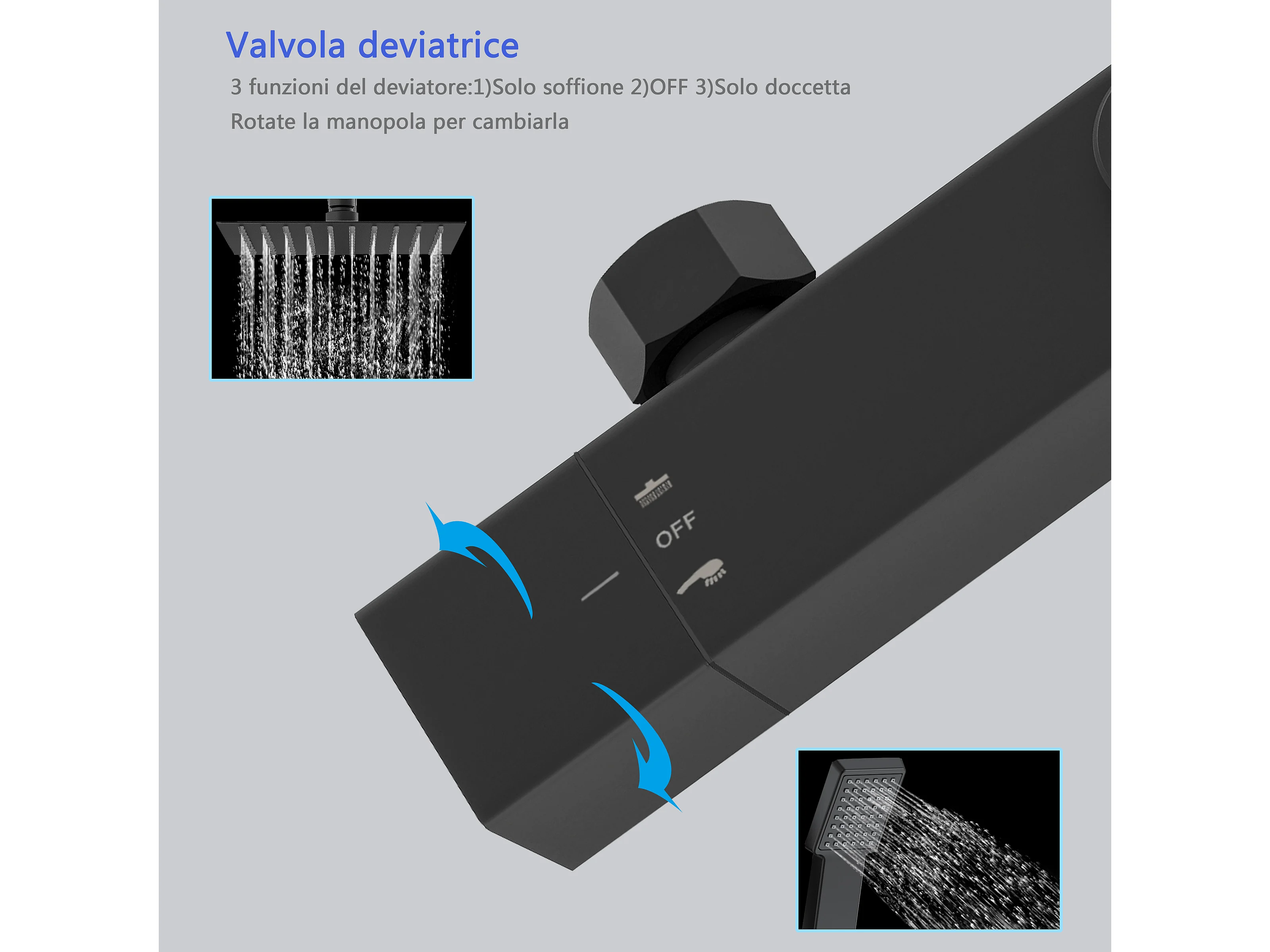Miscelatore doccia termostatico con manopola in lega di zinco,colonna doccia soffione acciaio inox, nero