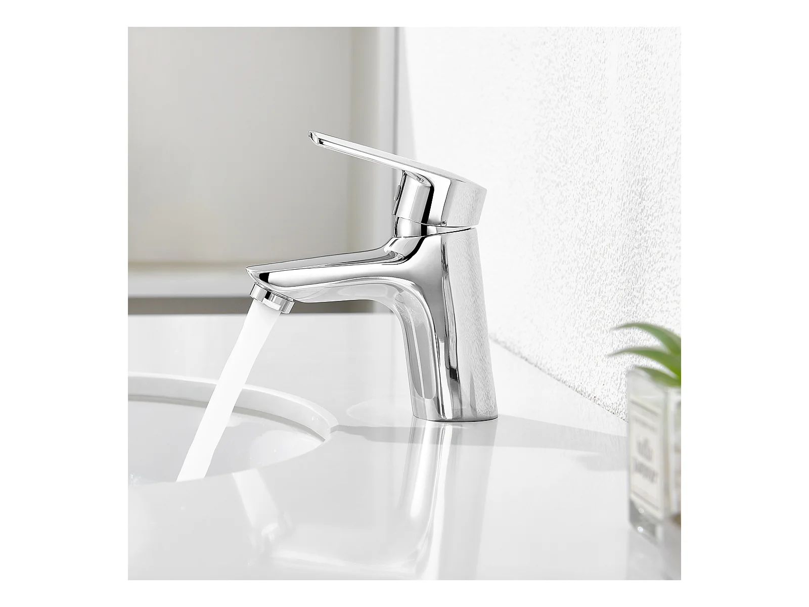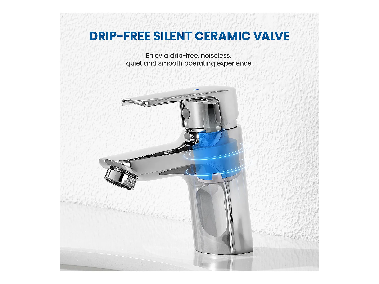 Miscelatore lavabo cromato con foro per scarico,ACQUA fredda/calda+set bagno accessorio 6 pezzi, autoadesivo/foro,acciaio inossidabile,spazzolato