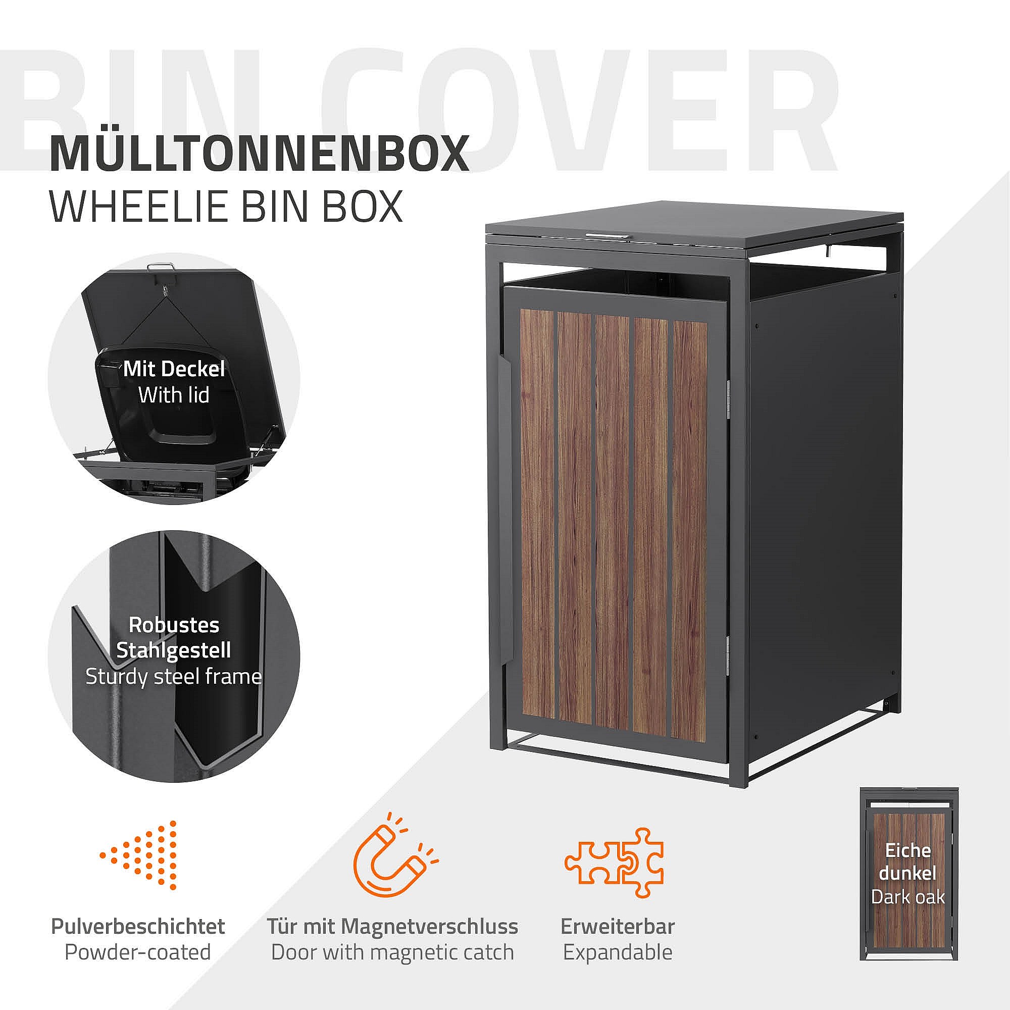 ML-Design Copribidone per spazzatura 1 bidone 240L acciaio antracite rovere scuro, porta e tetto a fioriera, pattumiera esterno resistente intemperie