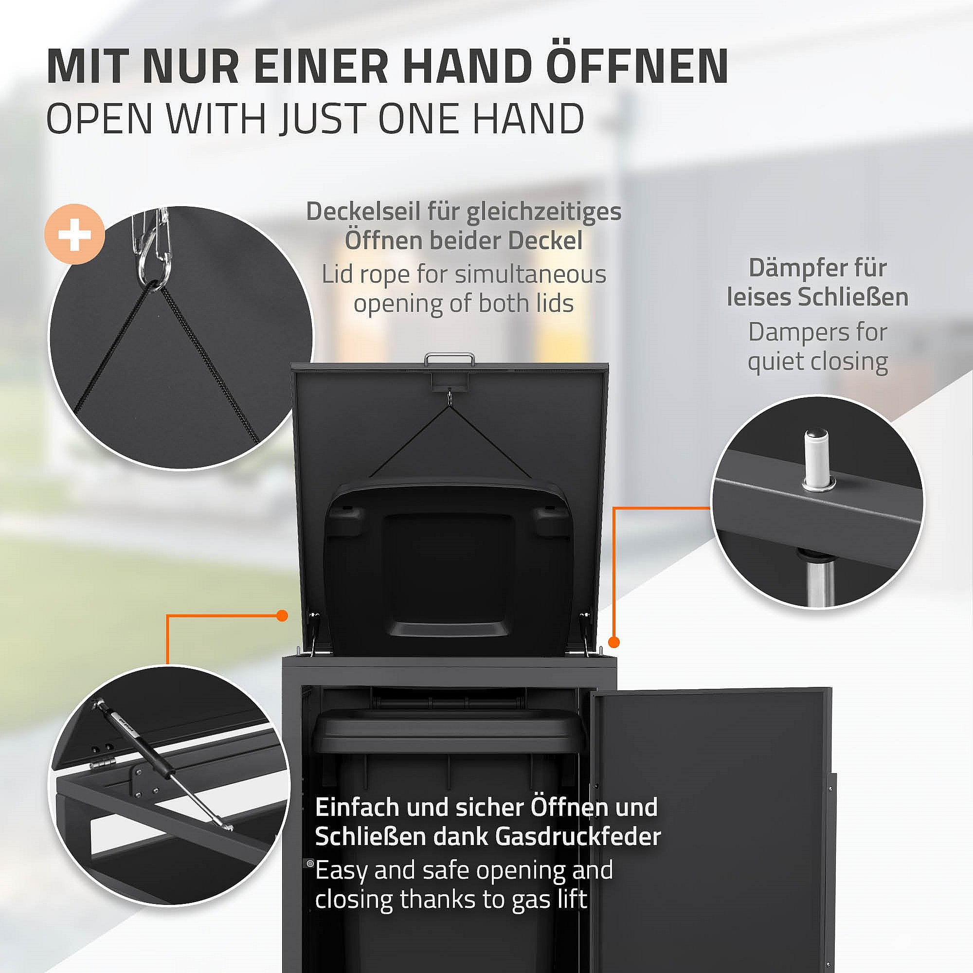 ML-Design Copribidone da spazzatura per 1 bidone 240L 68x80x120 cm antracite cassonetto per rifiuti con coperchio deposito per bidoni da esterno