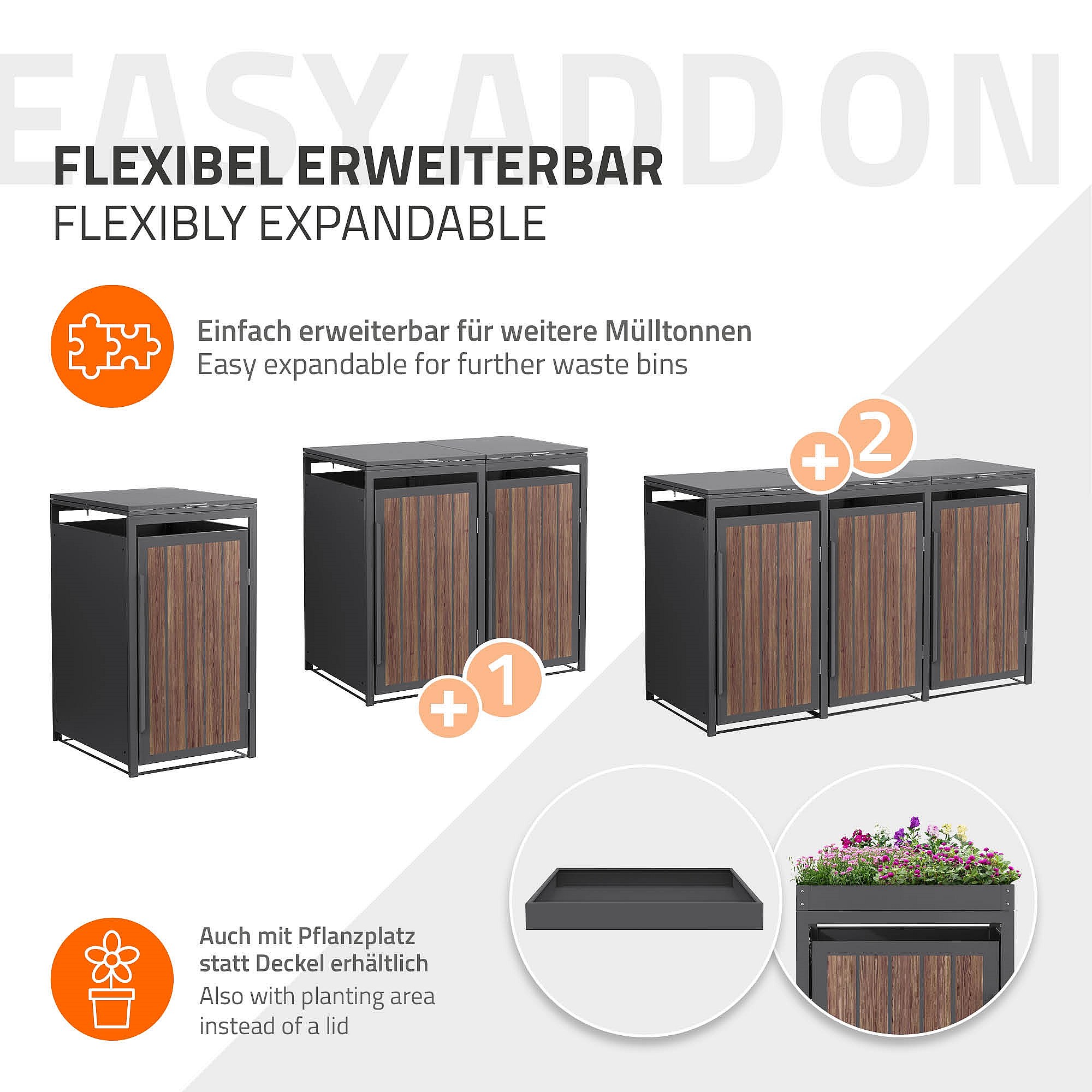 ML-Design Copribidone spazzatura 1 bidone 240L in acciaio antracite effetto legno con porta e tetto a fioriera, pattumiera da esterno, deposito bidoni