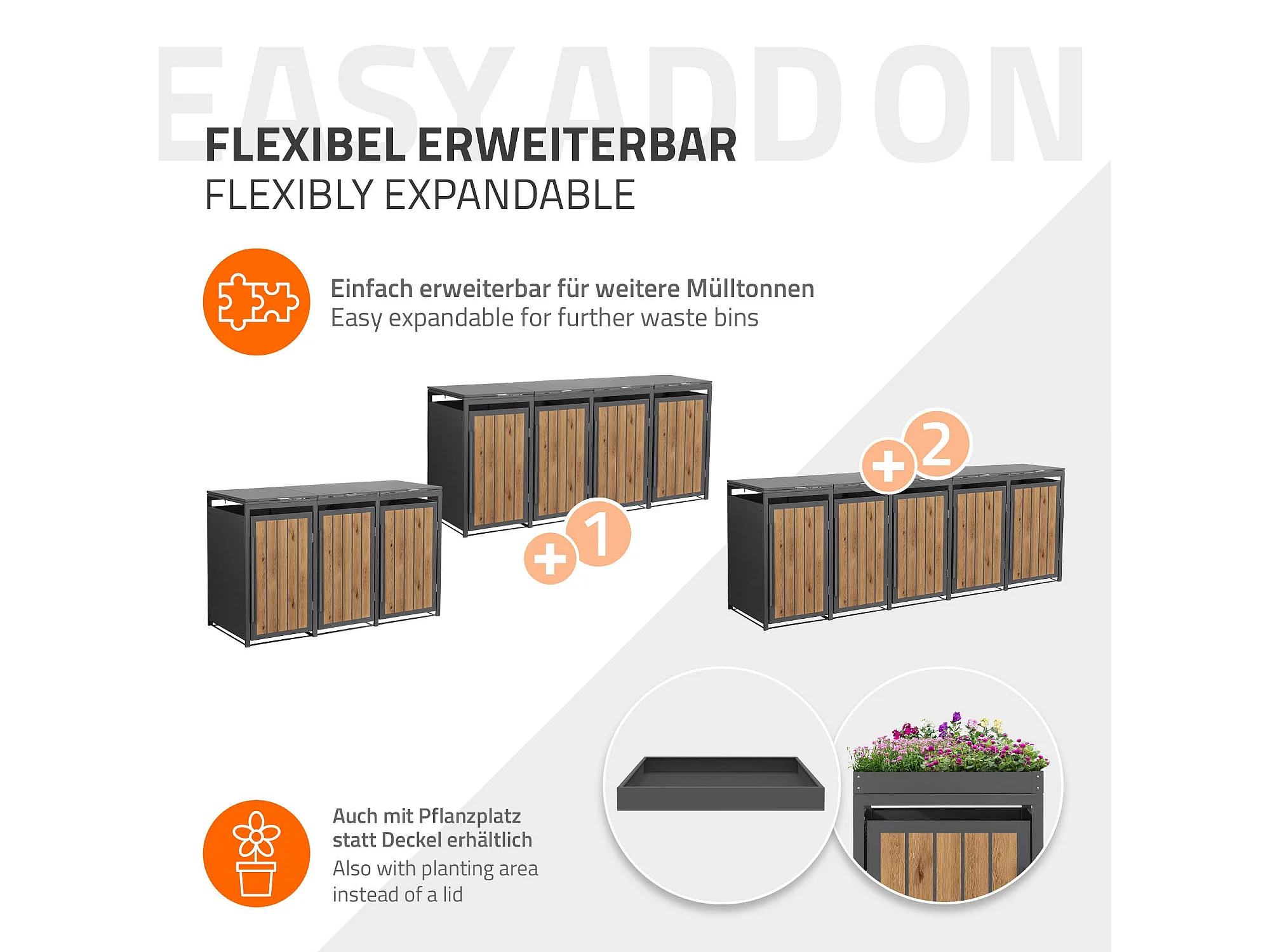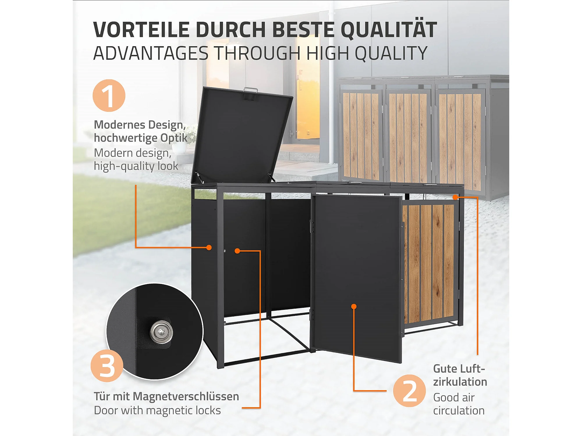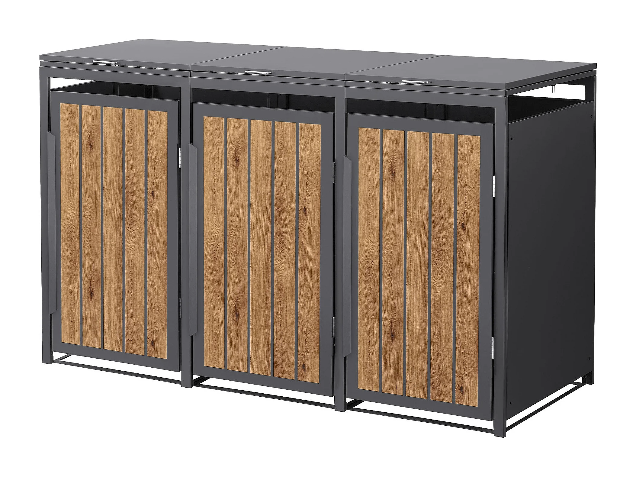 ML-Design Copribidone per spazzatura 3 bidoni 240L acciaio antracite rovere chiaro, porta e tetto a ribalta, pattumiera esterno resistente intemperie