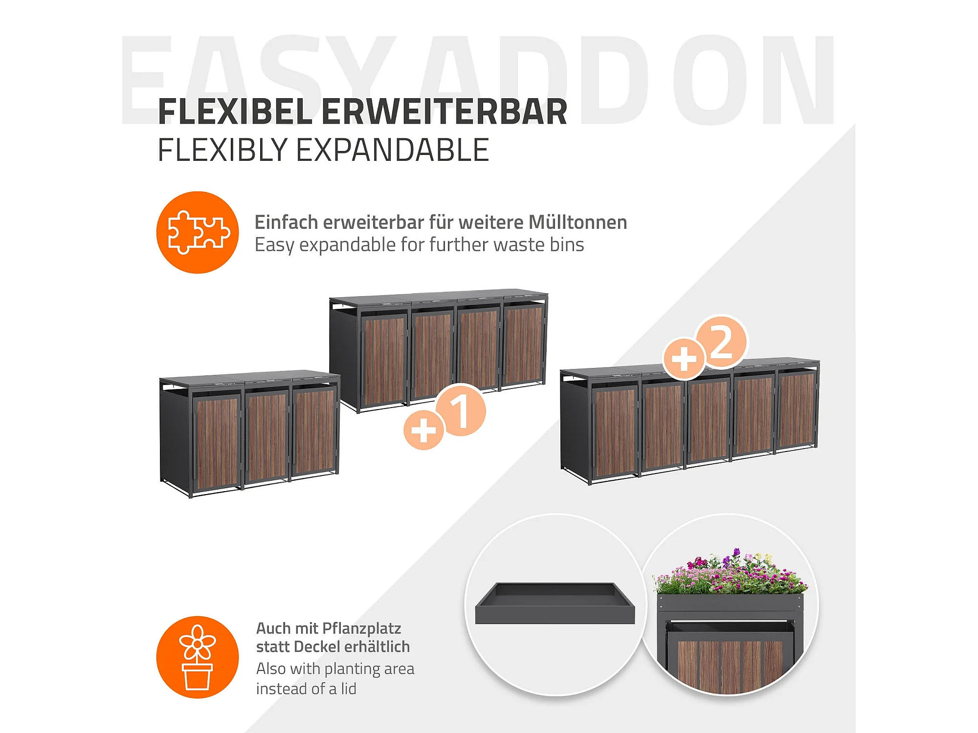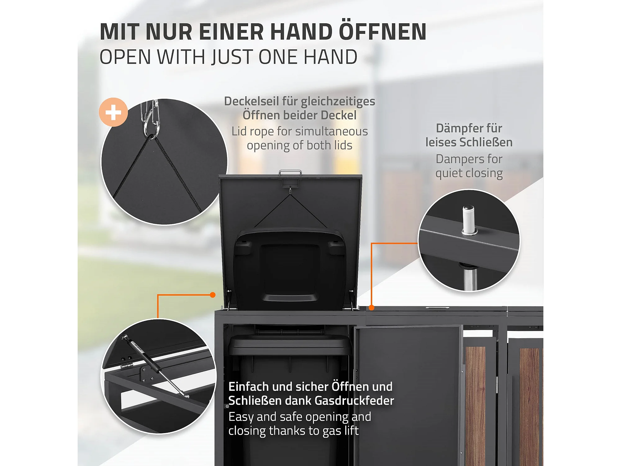 ML-Design Copribidone per spazzatura 3 bidoni 240L acciaio antracite rovere scuro, porta e tetto a ribalta, pattumiera esterno resistente intemperie