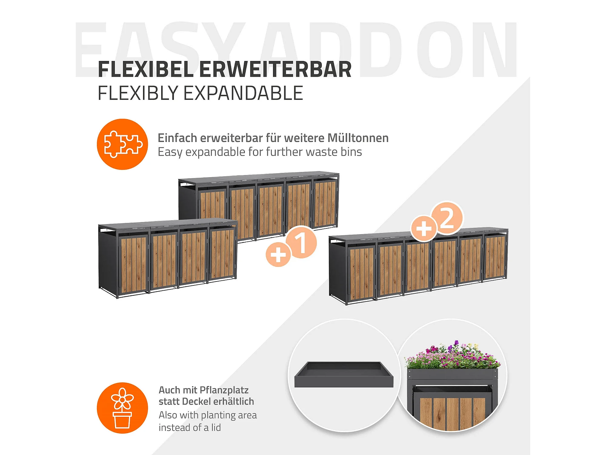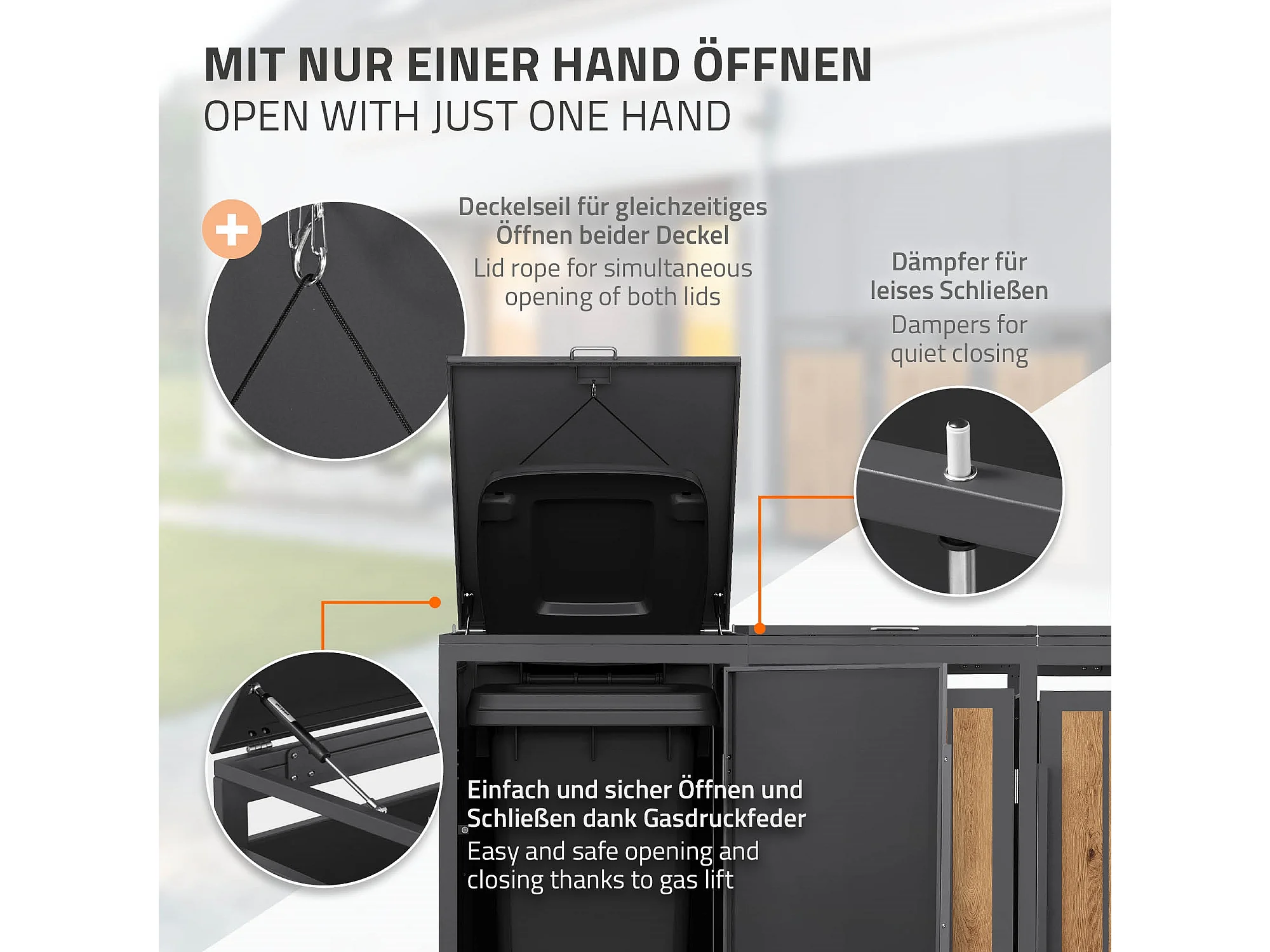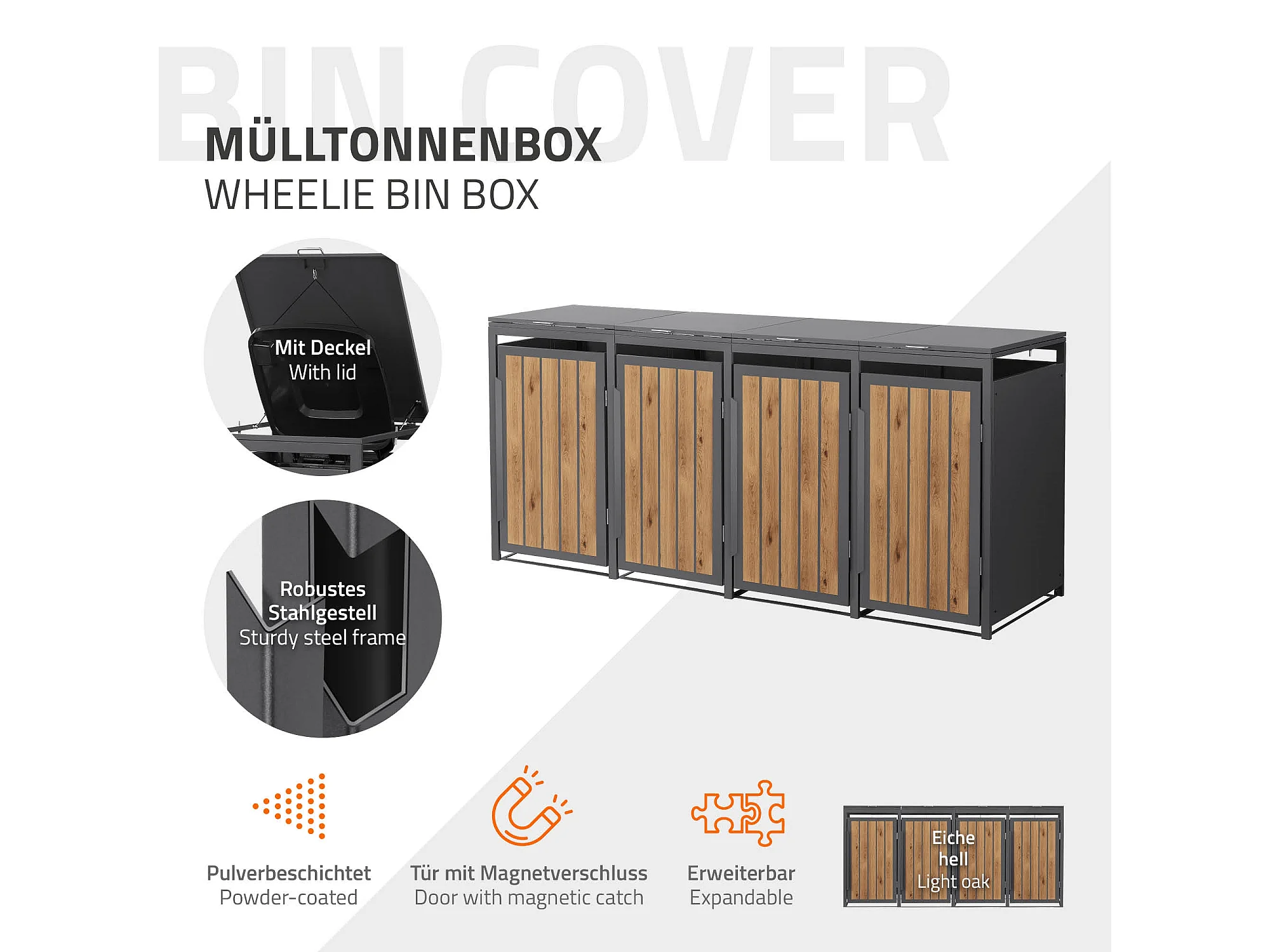ML-Design Copribidone per spazzatura 4 bidoni 240L acciaio antracite rovere chiaro, porta e tetto a ribalta, pattumiera esterno resistente intemperie