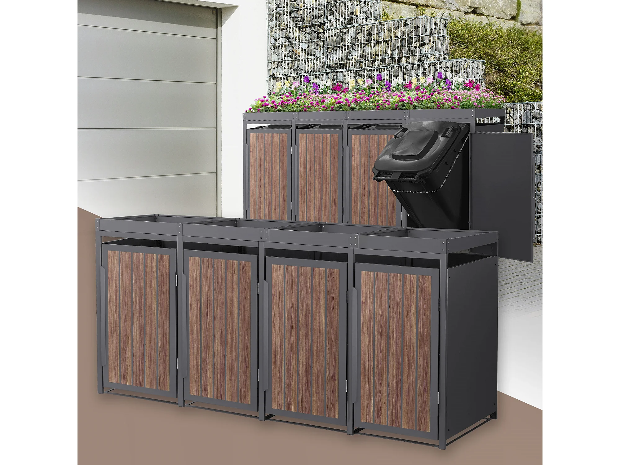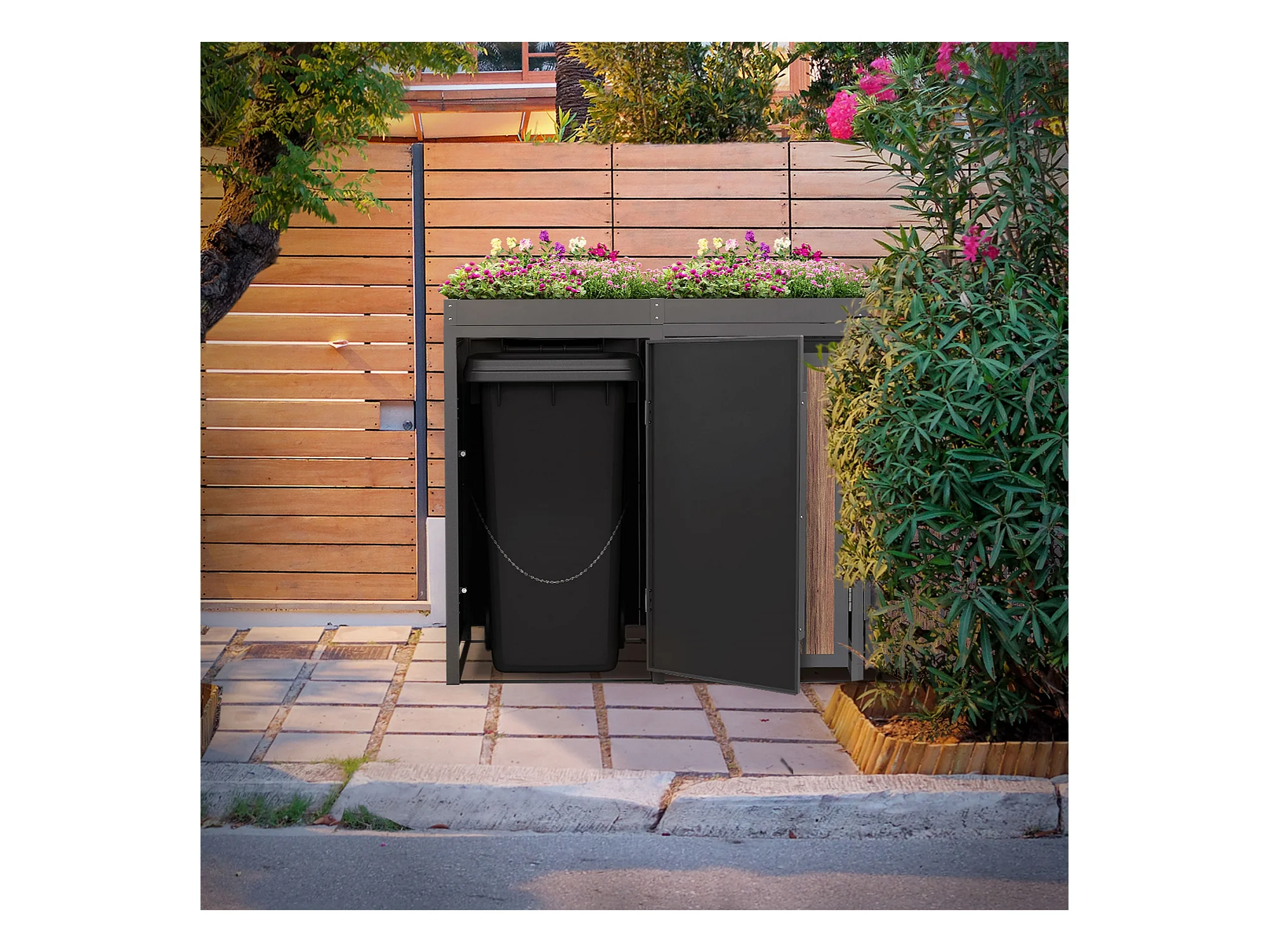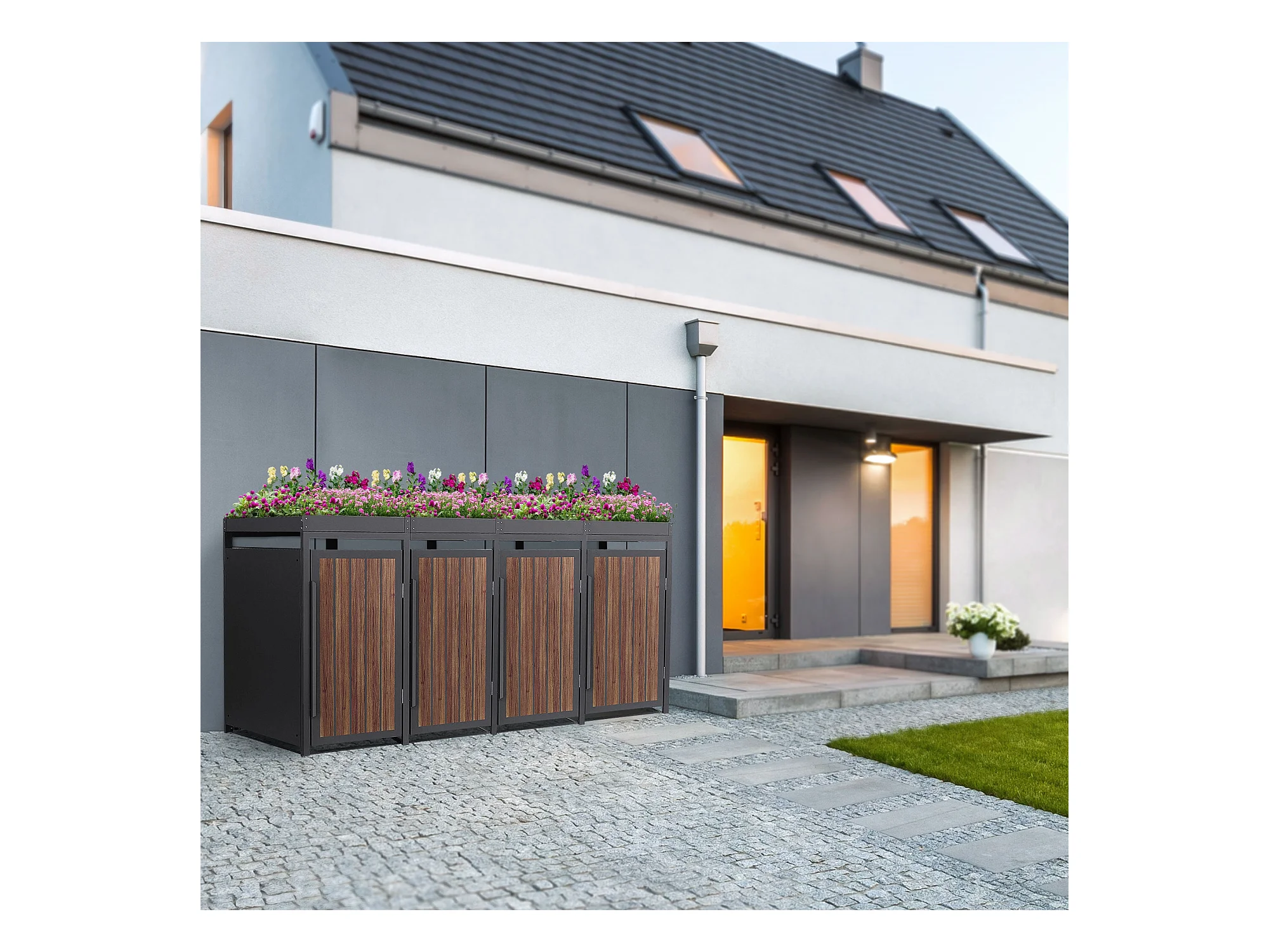 ML-Design Copribidone per spazzatura 4 bidoni 240L acciaio antracite rovere scuro, porta e tetto a fioriera, pattumiera esterno resistente intemperie