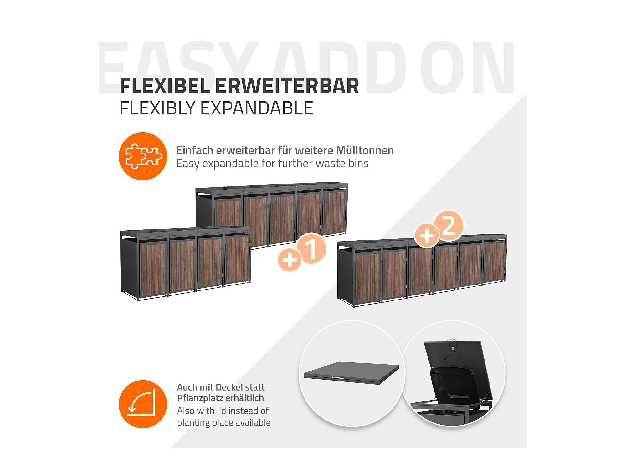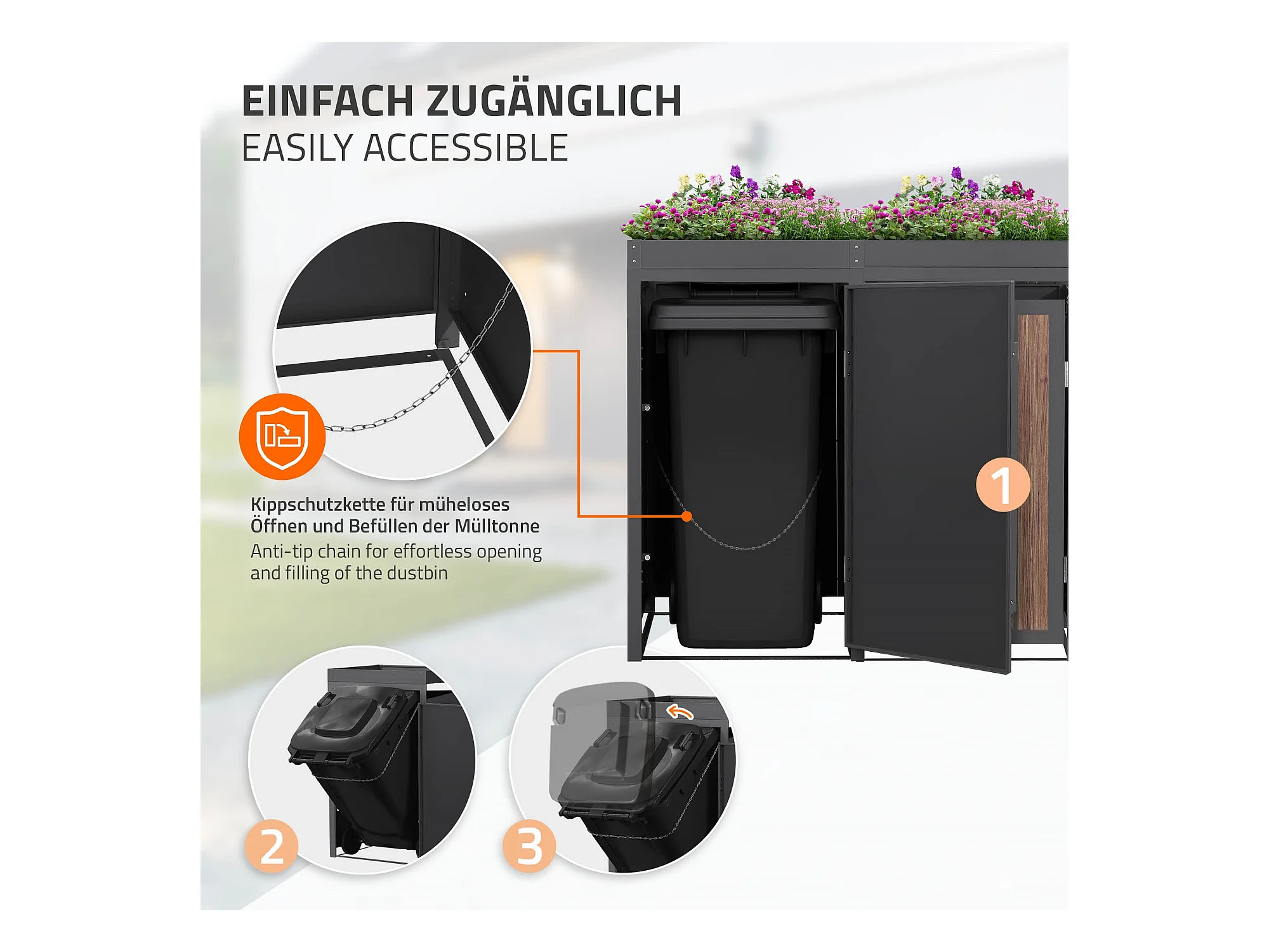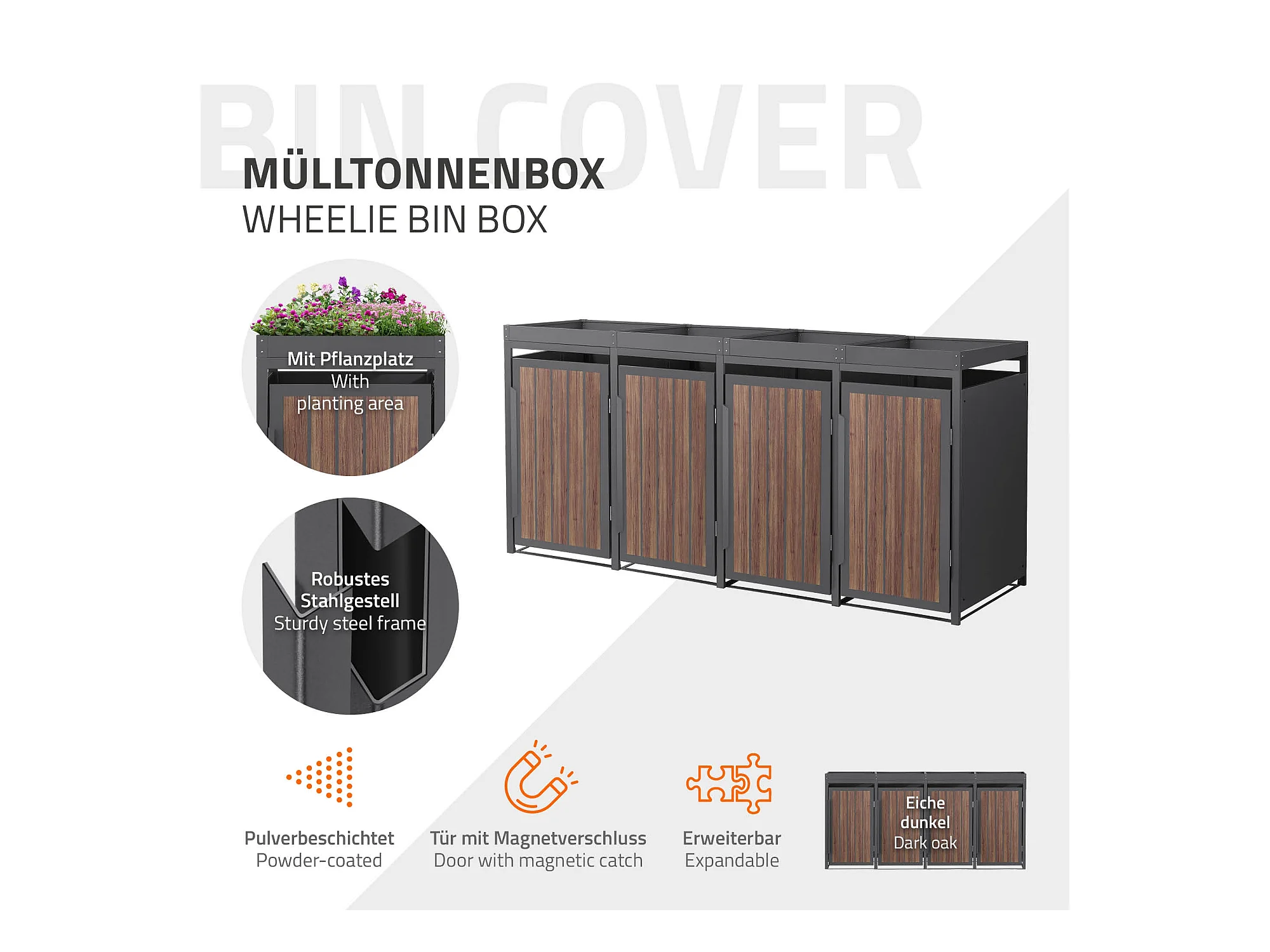 ML-Design Copribidone per spazzatura 4 bidoni 240L acciaio antracite rovere scuro, porta e tetto a fioriera, pattumiera esterno resistente intemperie